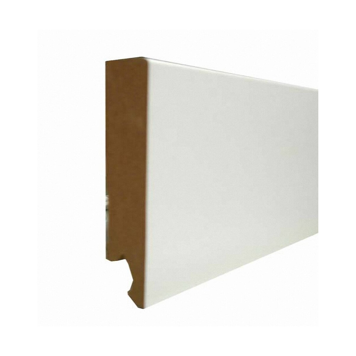 Plinthe MDF revêtu blanc. Section : 14 x 75 mm. Longueur : 240 cm.