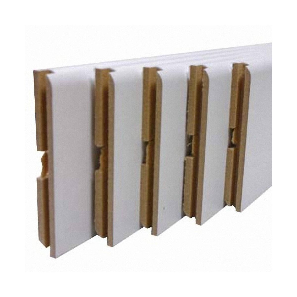Lot de 5 plinthes MDF revêtu blanc. Section : 8 x 70 mm. Longueur : 220 cm.