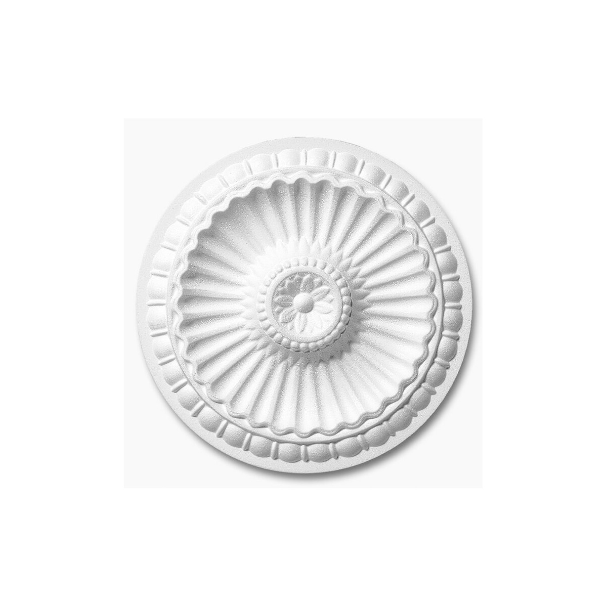 Rosace ronde Désiré en polystyrène. Donne une note originale à vos pièces. À peindre selon vos goûts avec une peinture sans solvant. Dimension : Diamètre 28 cm.