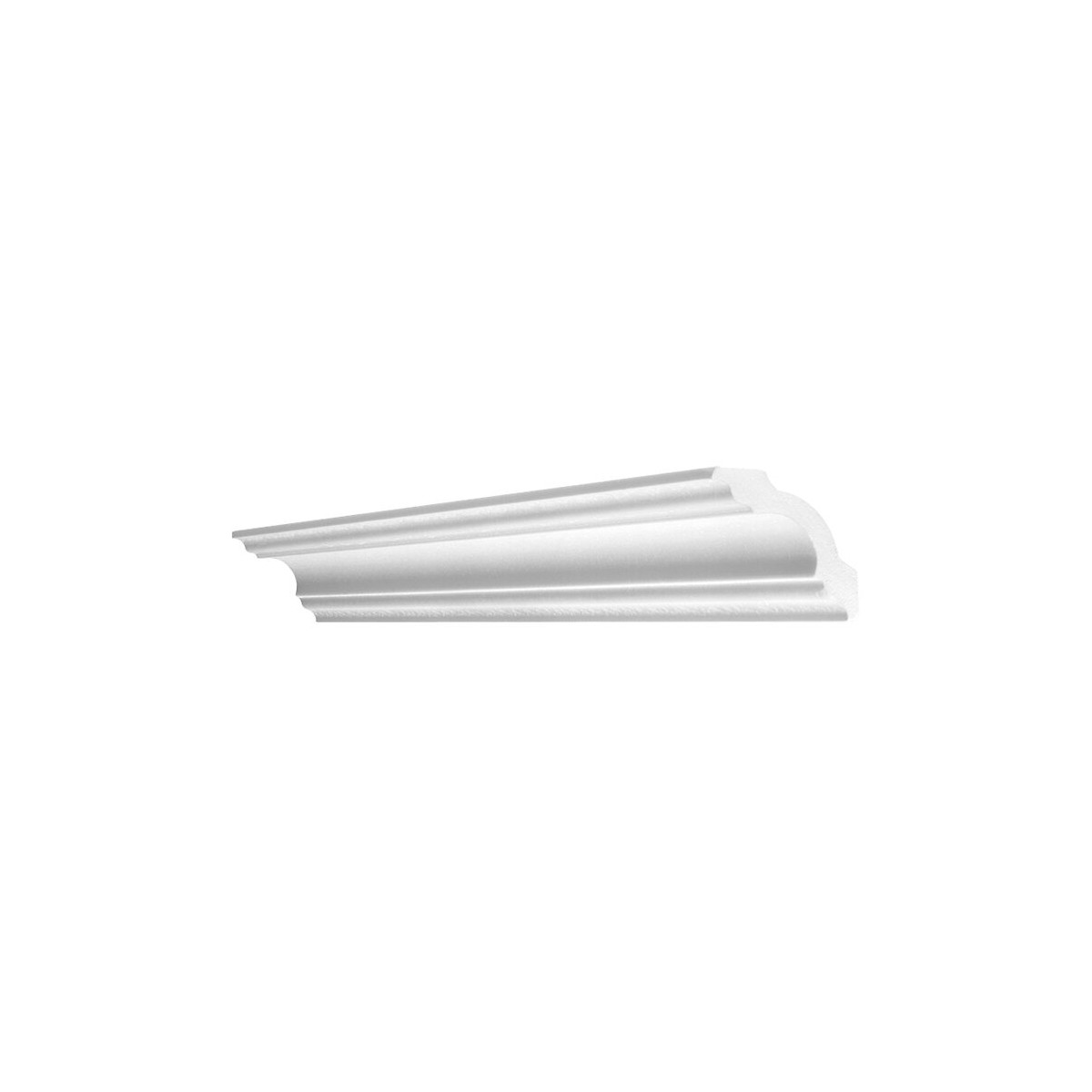 Moulure Stéphanie en polystyrène. Épaisseur du relief : 80 mm/80 mm. Surface lisse. Contour profilé. À peindre selon vos goûts avec une peinture sans solvant. Simple à poser. Dimensions : Largeur 200 cm x Profondeur 11,2 cm. Vendu à l'unité.