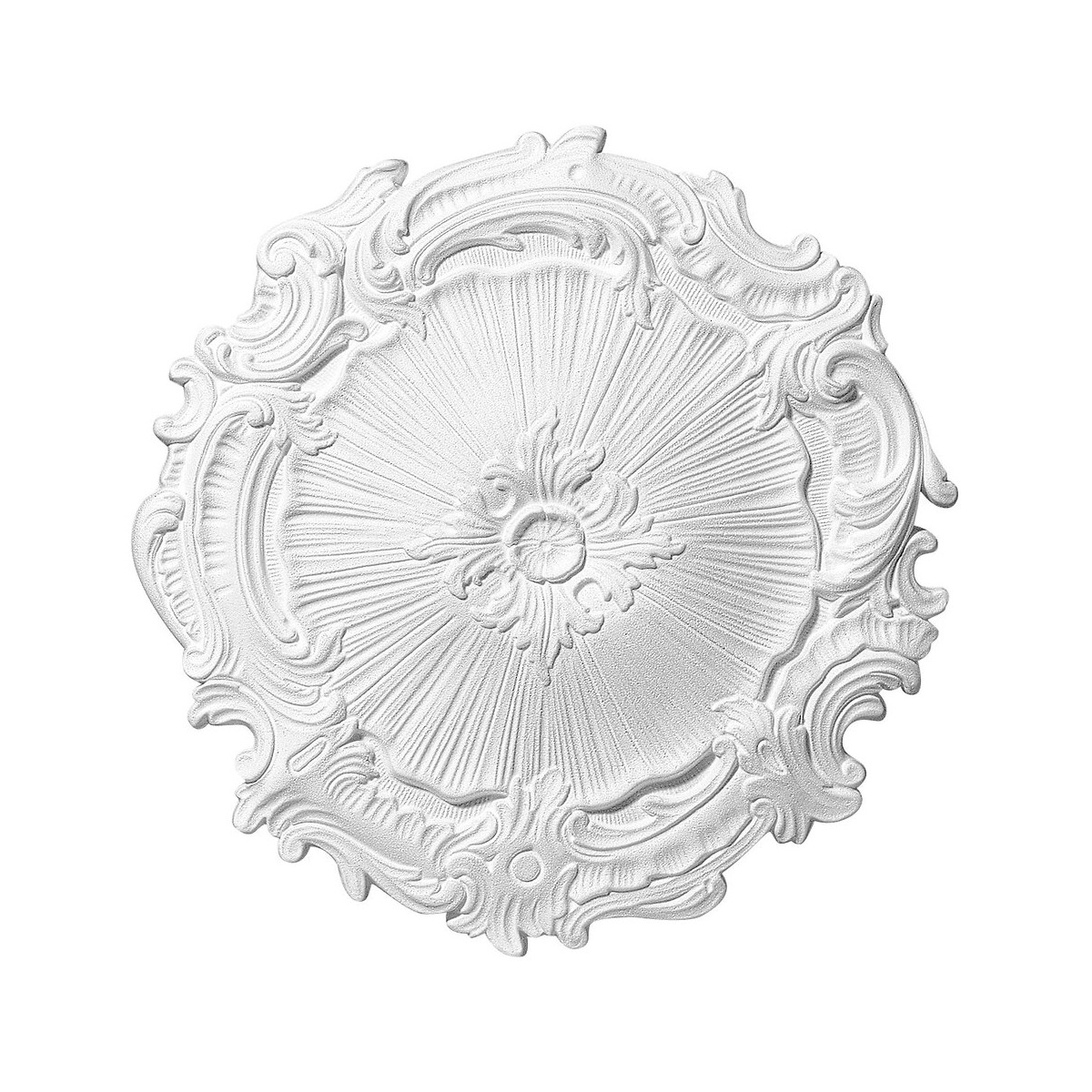 Rosace ronde Eleonora en polystyrène. Donne une note originale à vos pièces. À peindre selon vos goûts avec une peinture sans solvant. Simple à poser. Dimension : Diamètre 41 cm.
