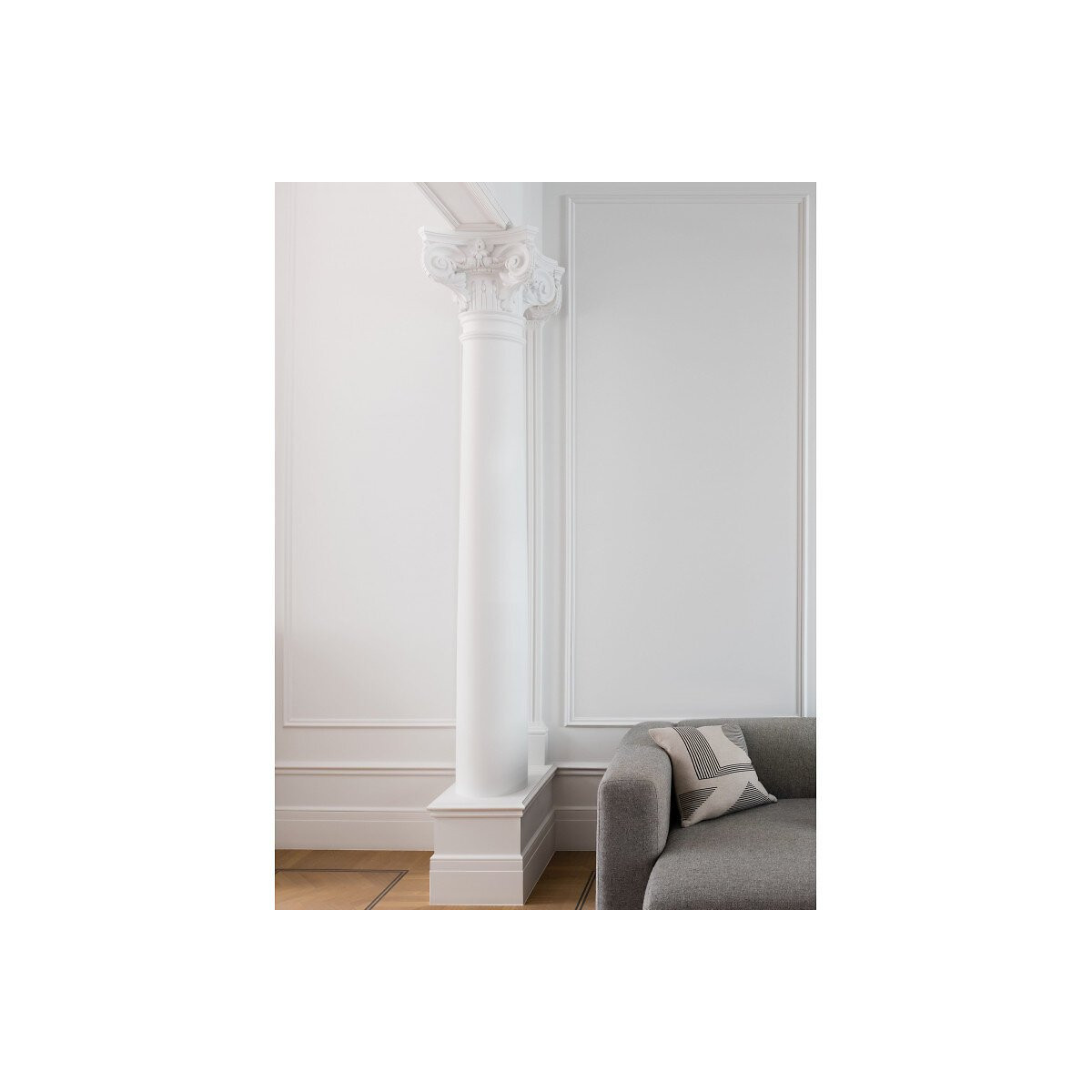 Simple cimaise PX117 dotée d'un design cannelé et avec un motif linéaire. Cet élément décoratif apportera du relief et du caractère à vos surfaces ; de plus, si vous souhaitez compléter le look, vous pouvez opter pour des corniches CX124 et des plinthes SX137. Ce produit peut également être peint pour répondre à vos besoins, dans le coloris de votre choix ! N'hésitez pas à calculer les quantités de colles nécessaires (FDP500 ou FDP700) grâce au calculateur de colles en ligne facile à utiliser. Vous pouvez aussi faire appel à notre bureau d'études si vous en ressentez le besoin
