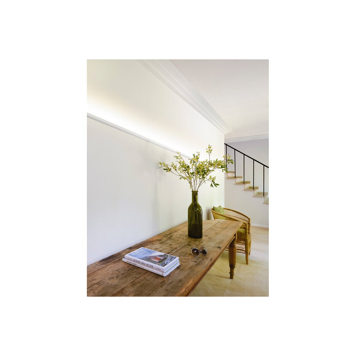 Ce profil CX189, conçu par Orio Tonini, dispose d'un design compact et anguleux ce qui vous apportera un éclairage LED indirect. Remarque : si vous souhaitez empêcher la lumière de briller à travers le matériau, vous pouvez placer un support en aluminium. Si vous souhaitez compléter le look, vous pouvez opter pour les plinthes SX162 SQUARE. Ce produit peut également être peint pour répondre à vos besoins, dans le coloris de votre choix ! N'hésitez pas à calculer les quantités de colles nécessaires (FDP500 ou FDP700) grâce au calculateur de colles en ligne facile à utiliser. Vous pouvez aussi faire appel à notre bureau d'études si vous en ressentez le besoin