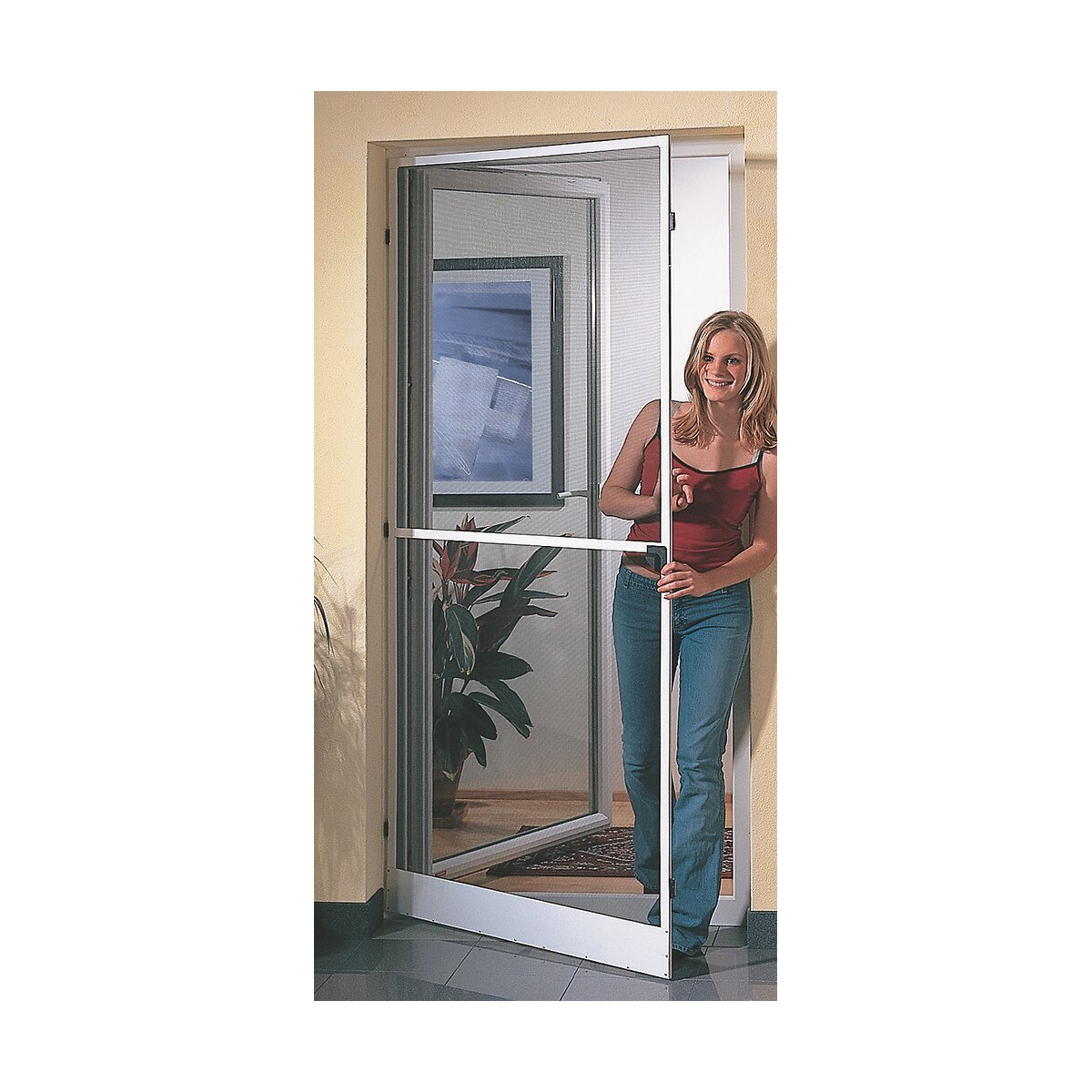 Porte battante moustiquaire en alu blanc pour équiper une ouverture de 100x210 maximum. Recoupable à la dimension souhaitée.