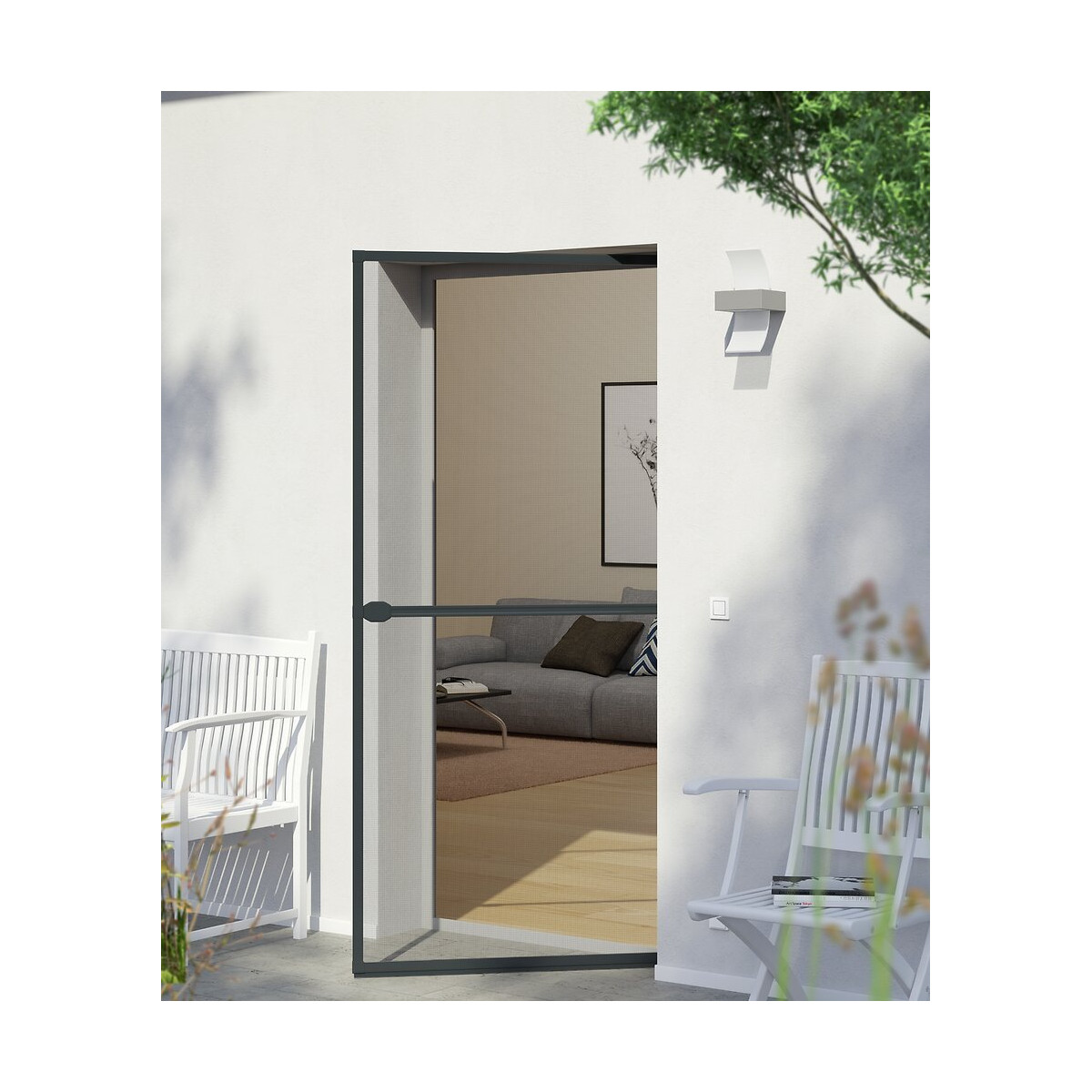 Porte battante moustiquaire en alu anthracite pour équiper une ouverture de 100x210 maximum. Recoupable à la dimension souhaitée .Kit complet pour un assemblage facile.