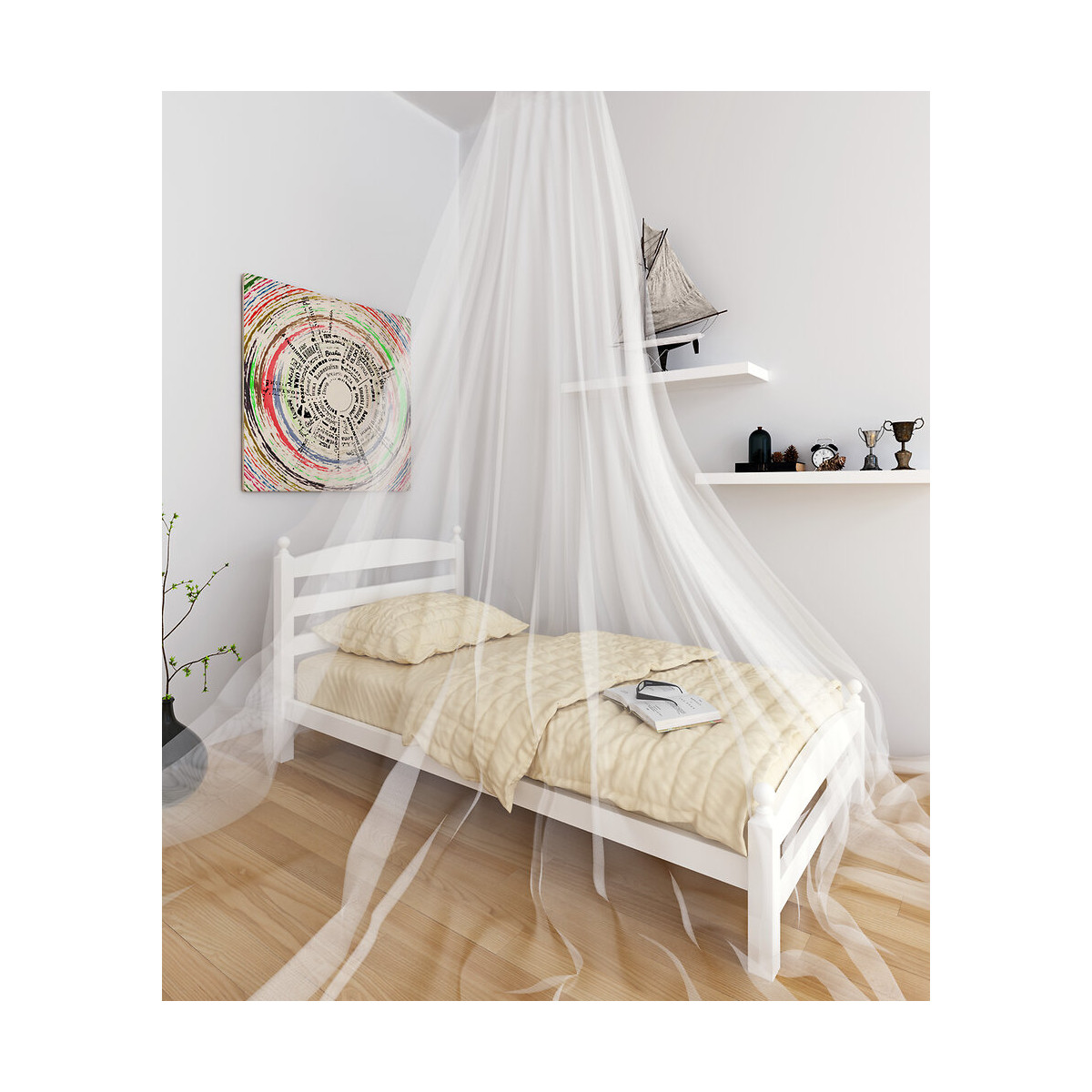 Moustiquaire ciel de lit en polyester blanc de 2,2x8,5m adaptée pour lit simple pour une protection nocturne optimale. Système de fixation non fourni.