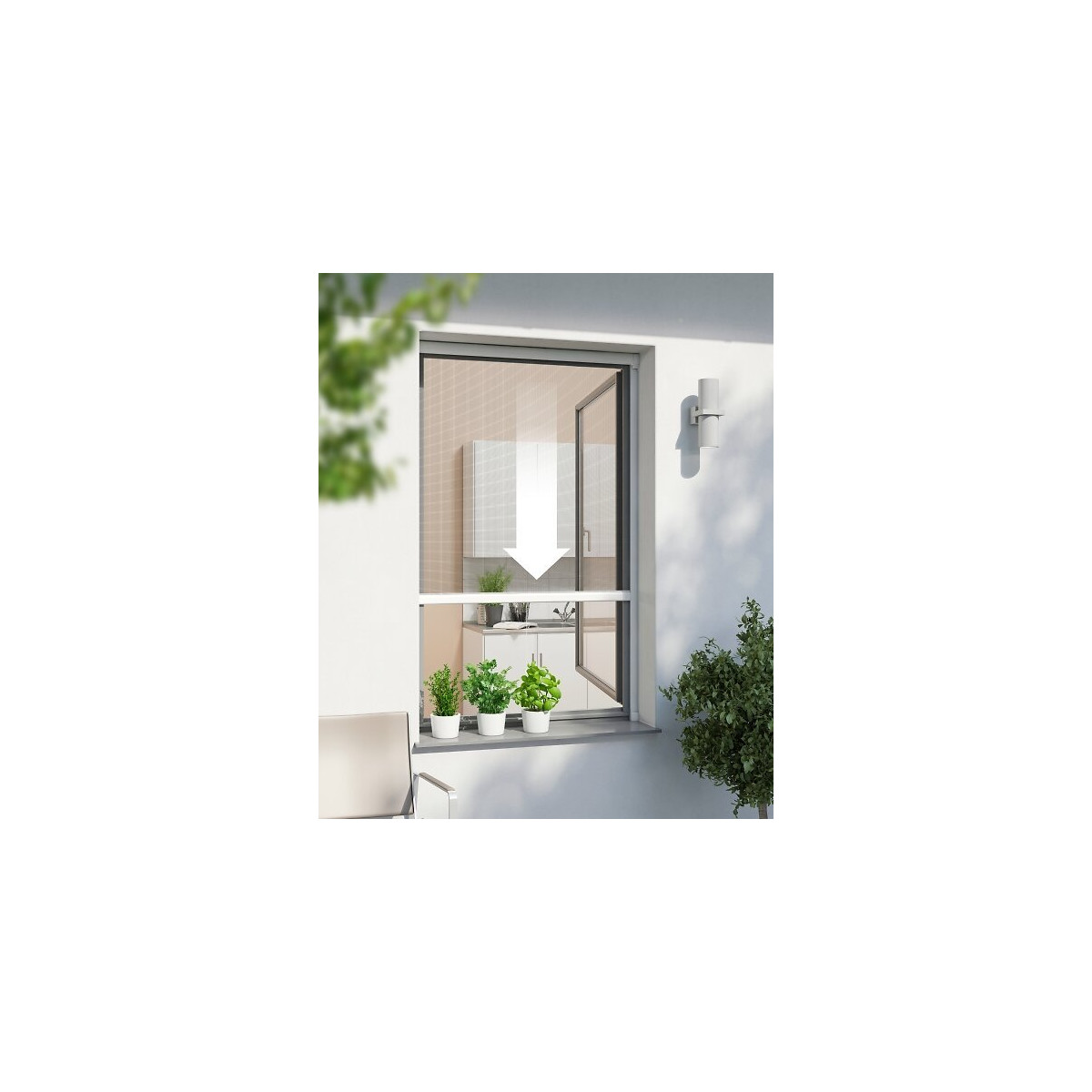 Enrouleur fenêtre moustiquaire en aluminium anthracite pour une ouverture maximale de 160x160cm. Recoupable aux dimensions souhaitées. Fixation sans perçage.Kit complet. Fixation dans l'embrasure sans perçage grâce à double système de serrage vertical et horizontal avec clé allen.