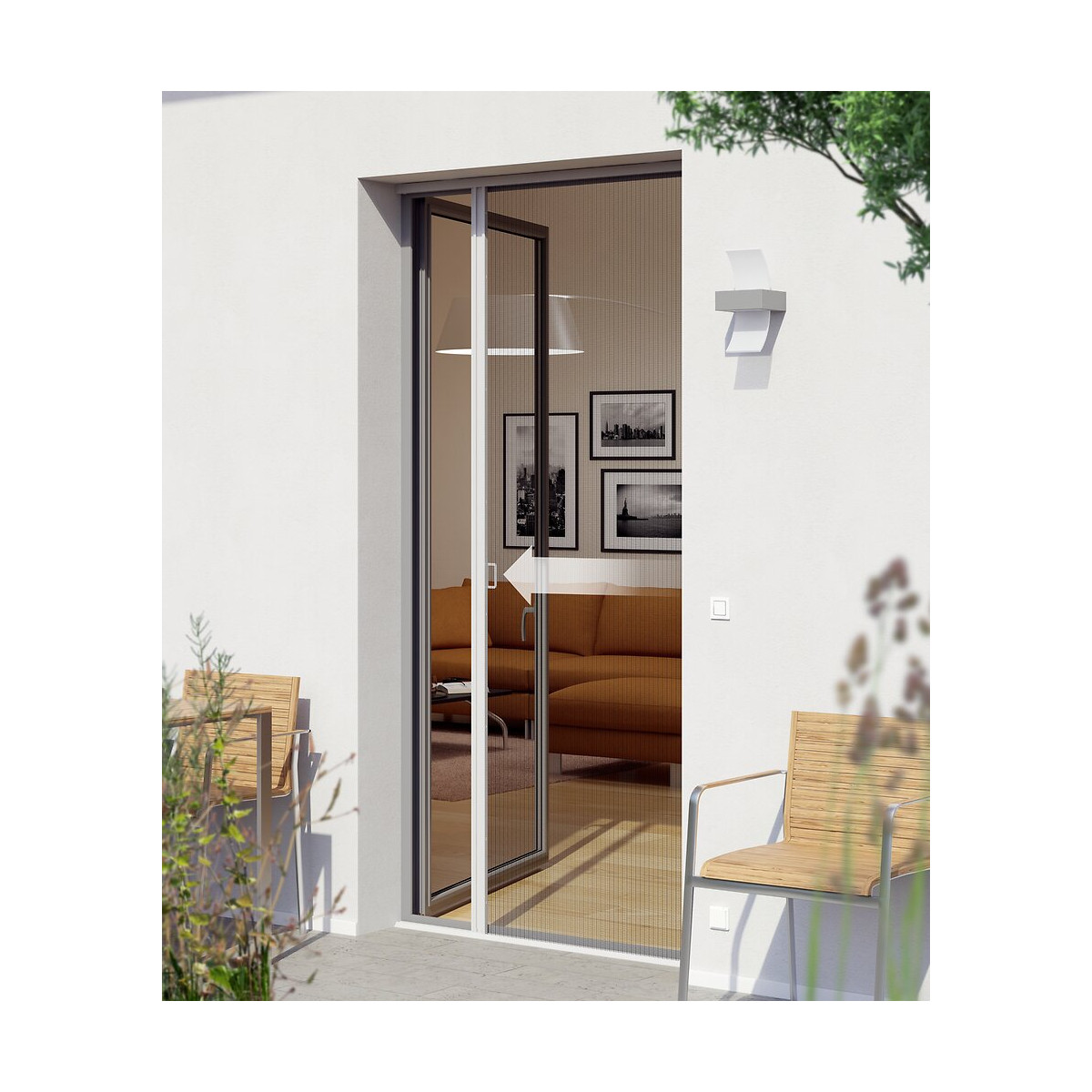 Store enrouleur moustiquaire plissé aluminium blanc pour porte d'une dimension maximale de 120x240 cm. recoupable à la dimension souhaitée.