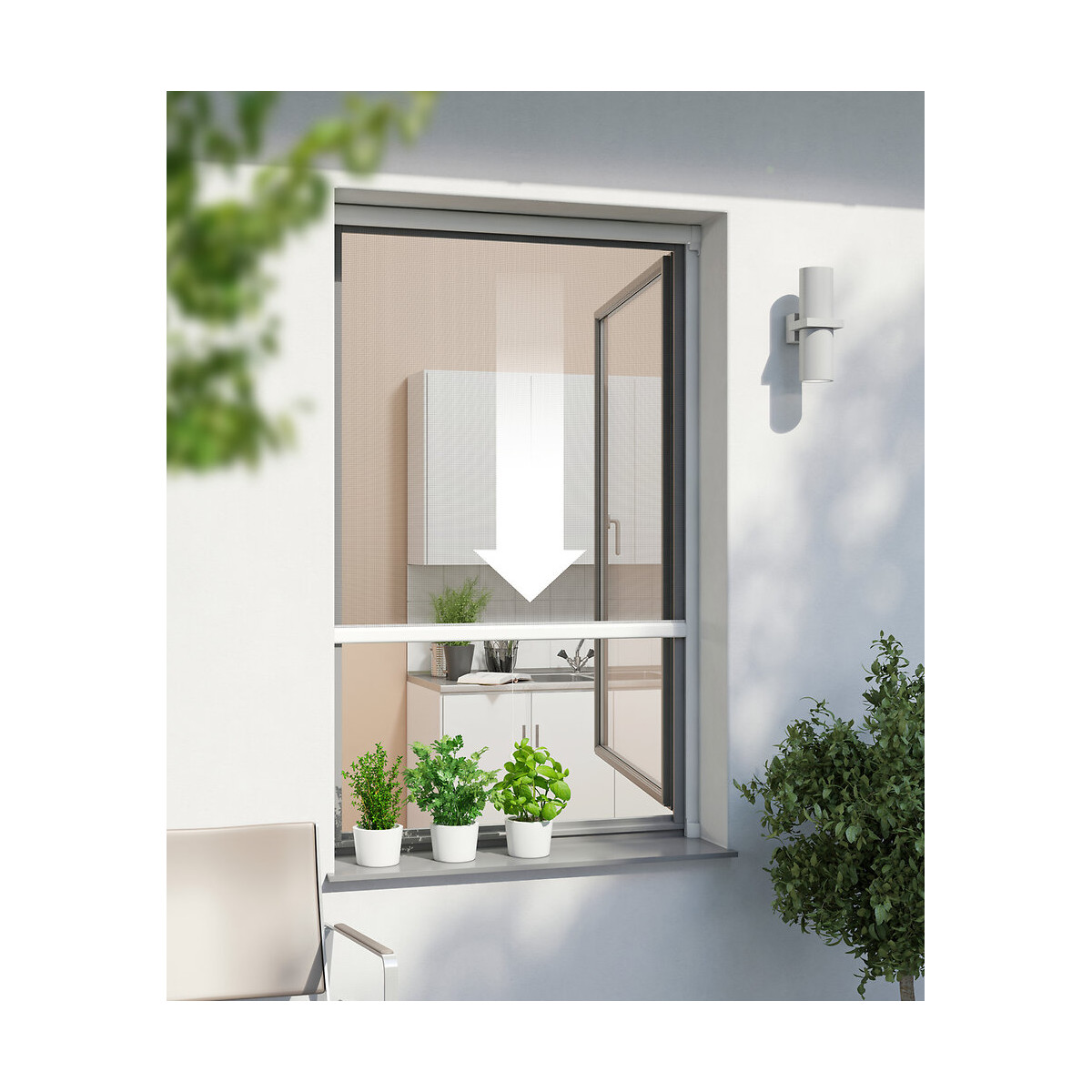 Enrouleur fenêtre moustiquaire en aluminium blanc pour une ouverture maximale de 100x160cm. Recoupable aux dimensions souhaitées. Fixation sans perçage.Kit complet. fixation dans l'embrasure sans perçage grâce à double système de serrage vertical et horizontal avec clé allen.