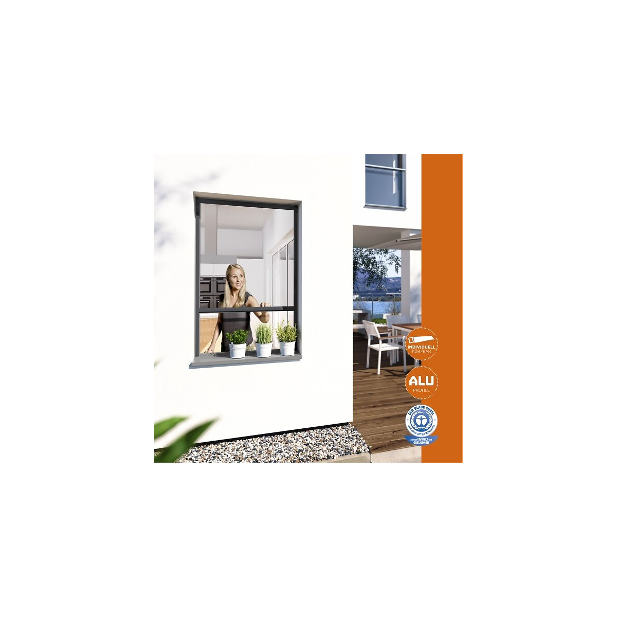 Enrouleur fenêtre moustiquaire en aluminium anthracite pour une ouverture maximale de 100x160cm. Recoupable aux dimensions souhaitées. Fixation sans perçage.Kit complet. Fixation dans l'embrasure sans perçage grâce à double système de serrage vertical et horizontal avec clé allen.