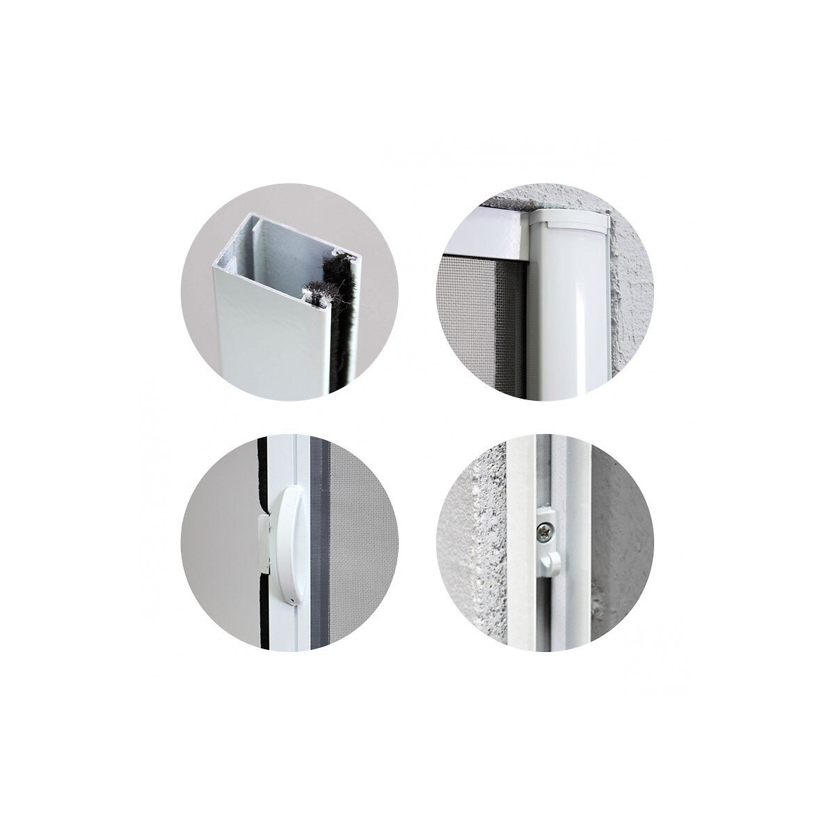Lot de 2 Moustiquaires Latérales ALU H220 cm x L130 cm Blanc : Pack Eco Confort Mettez l'accent sur votre Bien Etre avec ce lot de 2 moustiquaires enroulables latérales ALU, dimensions H220 cm x L130 cm blanc. Ces moustiquaires, en aluminium de qualité supérieure, vous assurent une grande longévité et une très forte résistance aux intempéries au fil des saisons. En outre, leur système d'ouverture latérale vous procure un panorama préservé afin de profiter au maximum de la luminosité des journées estivales. Le coffret enrouleur, positionné à droite ou à gauche de votre ouverture (1 moustiquaire par ouvrant), vous laisse le soin de dérouler la toile de protection anti-moustique à l'aide d'une barre de traction et celle-ci se verrouille du côté opposé à l'enrouleur pour un barrage anti-insectes très efficace Tous les composants de ces 2 moustiquaires enroulables latérales ALU sont recoupables à dimensions pour une adaptation fine et précise à vos ouvrants : les glissières sans aucune contrainte, le coffre enrouleur latéral, muni d'une réglette (recoupe de 40 cm maximum), vous apporte une aide précieuse à la découpe. Elles se recoupent : en Largeur : jusqu'à 100 cm pour obtenir ainsi une largeur comprise entre 30 cm minimum et 130 cm maximum en hauteur : jusqu'à 40 cm pour obtenir ainsi une hauteur comprise entre 180 cm minimum et 220 cm maximum Ces moustiquaires enroulables latérales ALU disposent d'une toile en fibre de verre résistante et imputrescible au maillage serré et régulier pour une efficacité optimale contre toute éventuelle intrusions d'insectes. Ce lot de 2 moustiquaires enroulables latérales ALU, dimensions H220 cm x L130 cm blanc, possèdent des finitions soignées pour un confort maximal : un joint brosse d'étanchéité présent sur la barre de traction pour garantir l'étanchéité de votre protection anti-insectes et également 2 poignées pour vous offrir une manipulation souple et aisée. Un prix Super Attractif pour ce lot de 2 stores enroulables latérales ALU : Faites le choix d'une protection naturelle et d'une ventilation continue ! Pose impérative : en tableau. La moustiquaire doit reposer sur 4 surfaces stables : généralement 3 murs et au sol une dalle. Caractéristiques techniques du lot de 2 moustiquaires enroulables latérales ALU, dimensions H220 cm x L130 cm blanc Encombrement du coffret enrouleur : Largeur 7 cm x Profondeur 4 cm Dimensions glissières : Largeur 2 cm x Profondeur 3 cm Longueur du ressort : 60 cm Destination du produit : Porte-Fenêtre ou Baie Vitrée Matériau cadre : Aluminium Matériau moustiquaire : Tissu fibre de Verre Largeur : 130 cm Hauteur : 220 cm Garantie : 2 ans, hors toile
