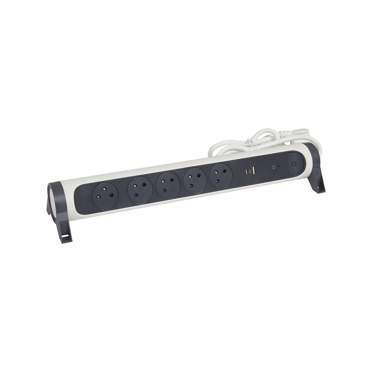 Multiprise 5 prises de courant affleurantes franco-belge. Multiprise rotative et fixable avec parafoudre. Chargeurs USB Type A et C 15,0W. Essentiellement pour un usage au bureau. Cordon en PVC blanc de 1,5M de long et 1mm² de section.Spécifications techniques