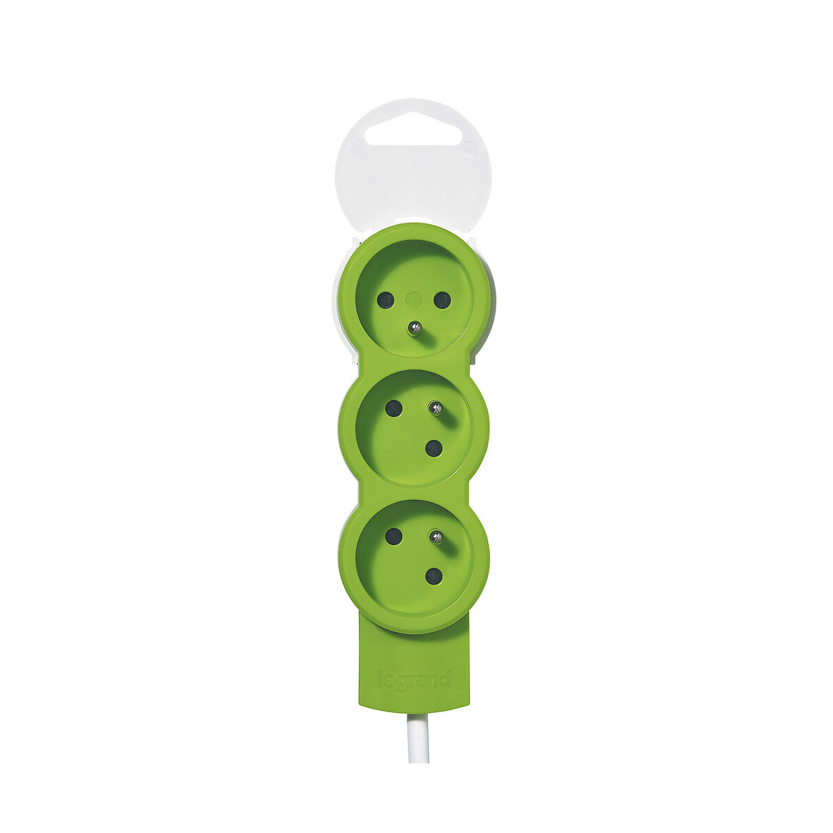 Rallonge multiprise 3 prises de courant 2P+T 16A 230V avec cordon 1,5m - vert. Multiprise avec 3 prises de courant. Couleur blanche et verte. Accroche possible sur accessoire packaging. Rallonge multiprise à poser ou à accrocher.Spécifications techniques