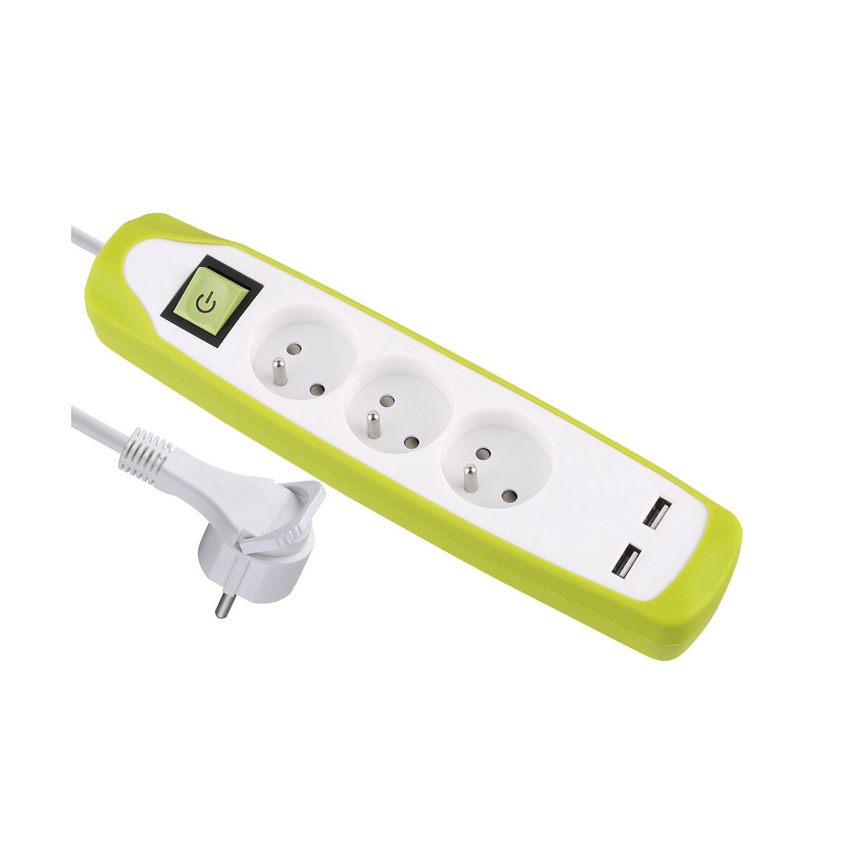 Bloc multiprises 3 prises avec terre et 2 USB blanc/bleu