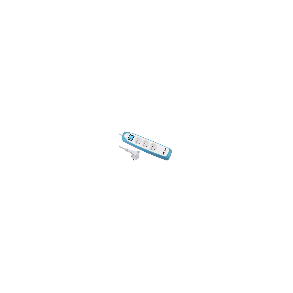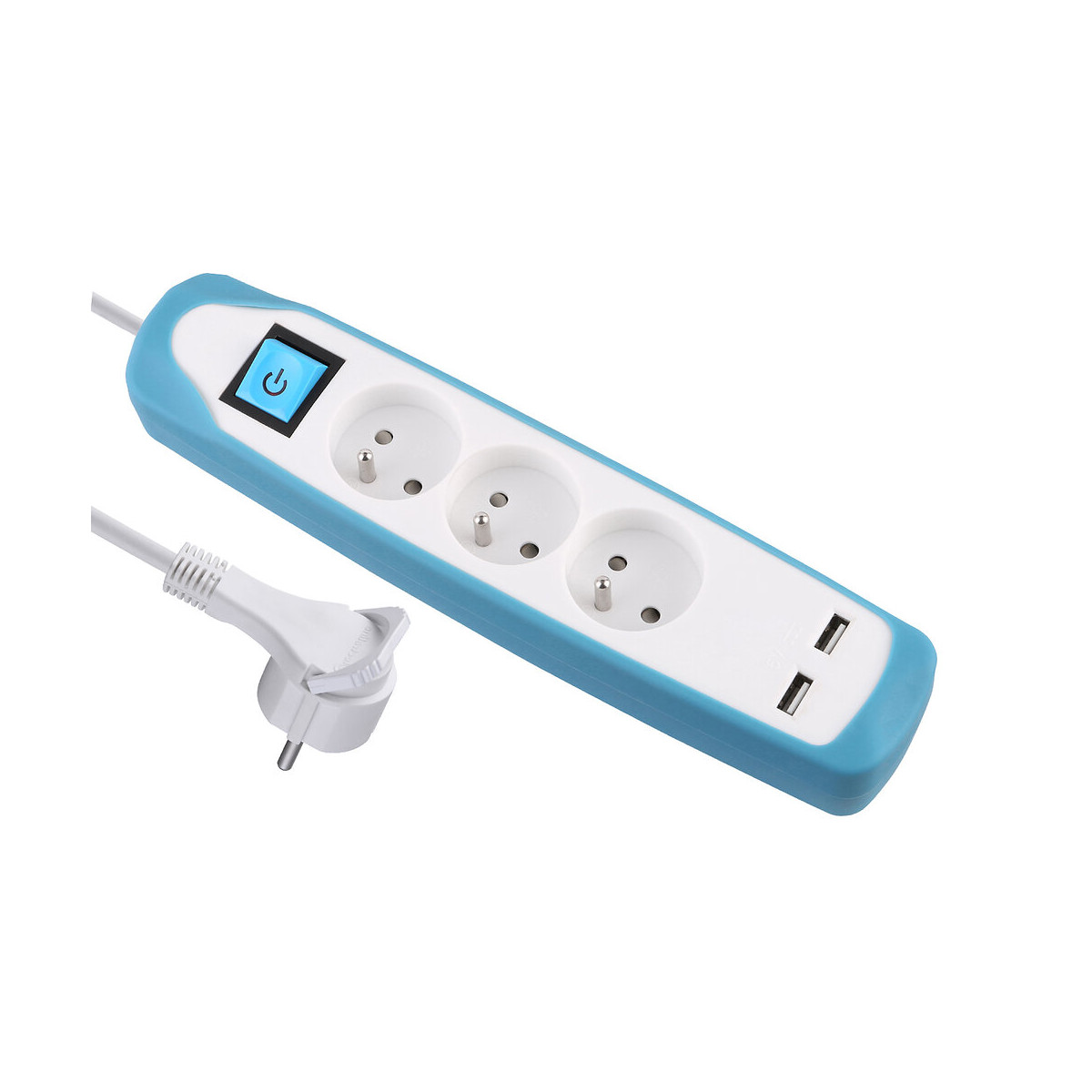 Bloc multiprises 3 prises avec terre et 2 USB blanc/vert