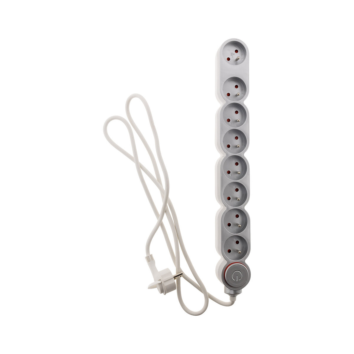 Bloc multiprise pour brancher tous vos appareils électriques. 8 prises 16A (2P+T) et cordon 3G1,5 d'une longueur de 1,5m. Avec fiche parafoudre pour protéger tous vos appareils électriques. Puissance max 3680W sous 230V - Câble HO5VV-F 3G1 mm² d'une longueur de 1,5m - Conformes aux normes NF, CE et parafoudre EN 61643-11 - Classe III - Avec sécurité enfant.