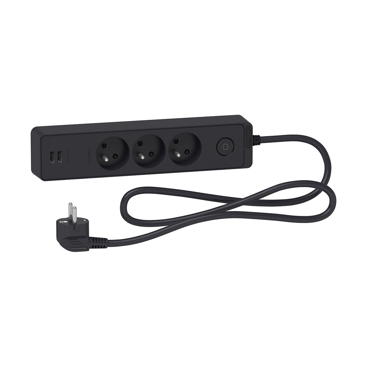 Une gamme de blocs astucieuse et esthétique, inspirée de la gamme d?appareillage Odace. Ainsi, de l?interrupteur à la prise, de la multiprise jusqu?au tableau électrique, Schneider Electric offre un design unique et cohérent qui s?adapte à tous les intérieurs. Les blocs multiprises sont dotés d?un interrupteur lumineux pour couper les veilles et réaliser des économies d?énergie, avec un témoin lumineux qui s?adapte aux conditions de nuit afin d?éviter les nuisances lumineuses. Enfin, elles vous permettront de recharger tous vos appareils à ports USB avec une charge rapide 2,4A. Caractéristiques : Anthracite, Polypropylène, 250V, 3 prises 2P+T et 2 USB, CE, NF, interrupteur lumineux.