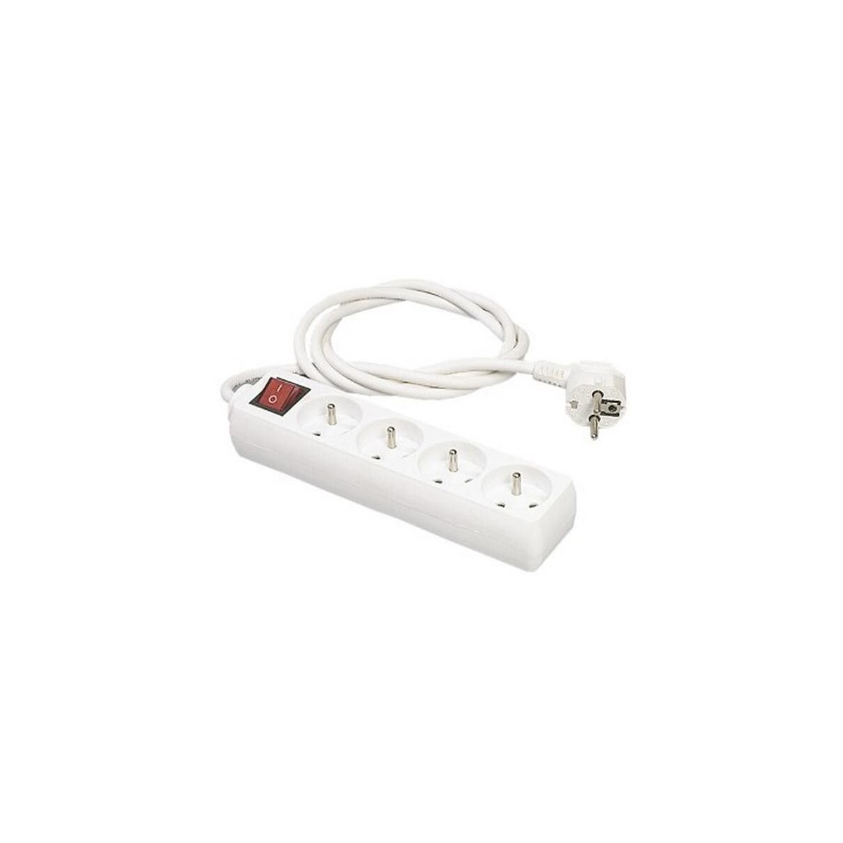 Bloc 4 prises 2 pôles + terre - Interrupteur lumineux - Câble : 3 x 1 mm2 - Puissance max : 3680 W - Protection enfants - Longueur câble 1m.