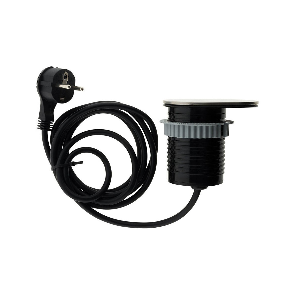 Bloc multiprise encastrable compact à glissière avec USB et prise 2P + T. Accessoire de bureautique permettant l'ajout d'une prise sur l'emplacement dédié du bureau