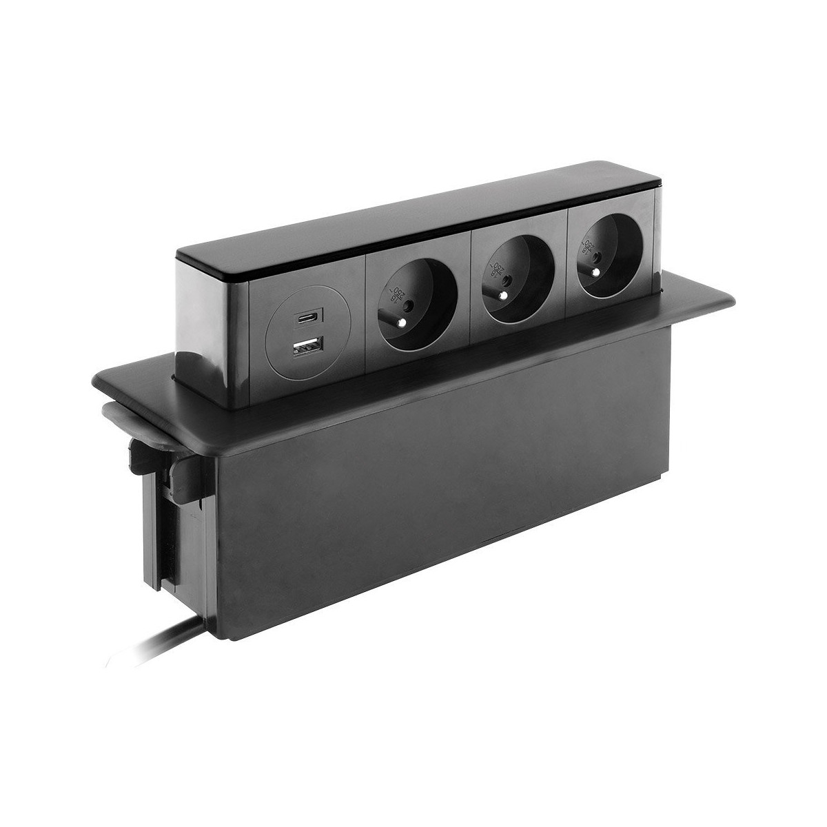 Cette multiprise encastrable design vous donne la possibilité de brancher 3 appareils électriques en simultané tout en rechargeant votre smartphone ou votre tablette de manière rapide. conçu pour optimiser l'espace de travail et vous garantir un véritable gain de place, cette multiprise bénéficie de la technologie Quick Charge et s'intègre de manière discrète dans votre plan de travail. Encastrable, elle disparaît dès que vous n'avez plus besoin de l'utiliser. C'est le branchement idéal dans une cuisine ou un bureau. L'installation se fait de manière simple et rapide. Pour l'installer, il vous suffit de percer un trou rectangulaire sur votre surface d'une dimension de 247x60 (mm).