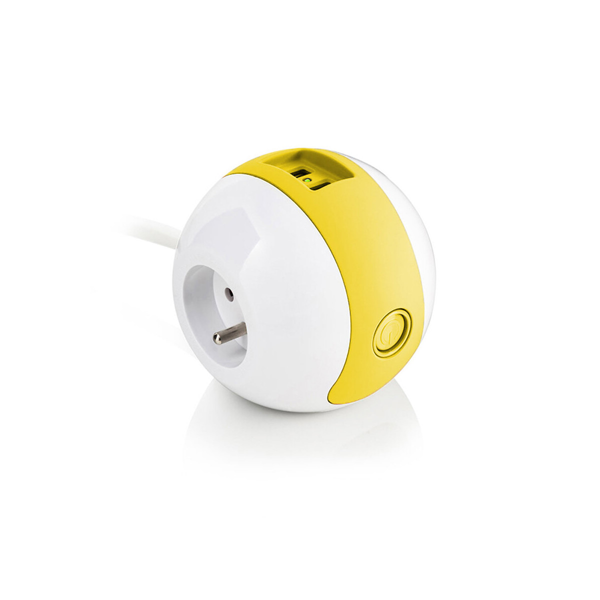 Multiprise Multimédia Wattball 2p 16a + 1p 6a + Usb 2.1a - Jaune