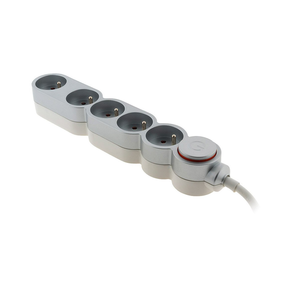 Bloc Home 5 Prises 16a 2p+t Avec Interrupteur Et Fiche Extraplate - Silver - Câble Ho5vv-f 3g1 3m