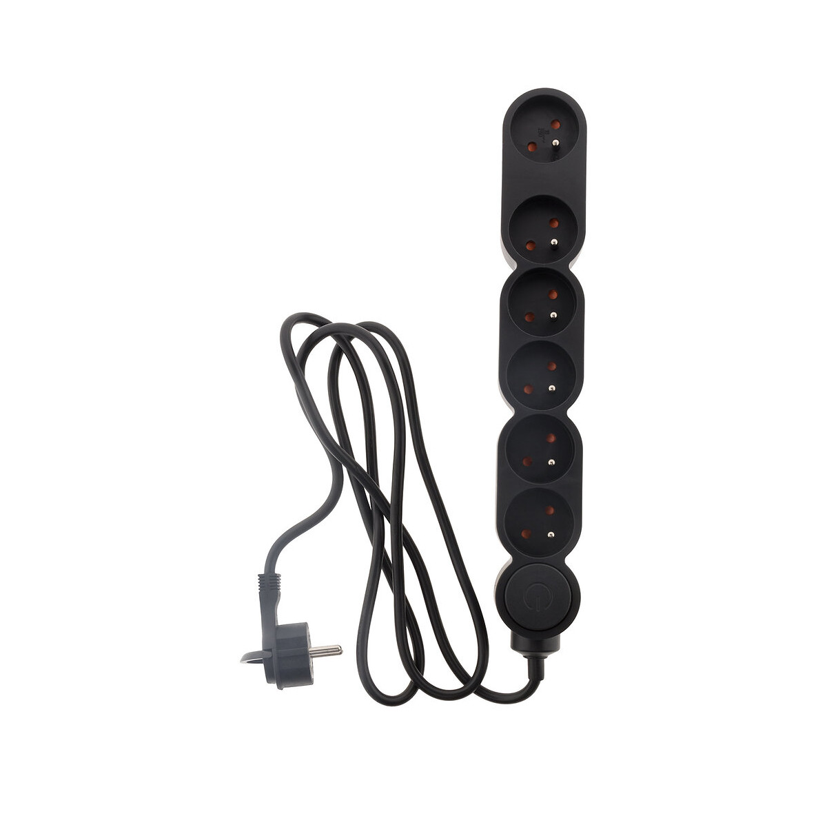 Bloc Home 6 Prises 16a 2p+t Avec Interrupteur Et Fiche Extraplate - Noir - Câble Ho5vv-f 3g1 1,5m