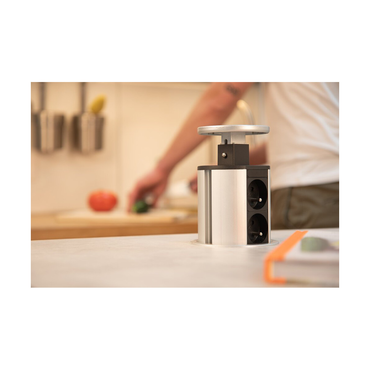 Ce bloc escamotable vous permet d'ajouter 4 prises discrètes au plan de travail d'une cuisine ou d'un bureau. Pressez simplement sur son capot et faites le coulisser verticalement pour disposer des prises. Sa finition soignée lui permetra de s'intégrer à tout type d'intérieur.