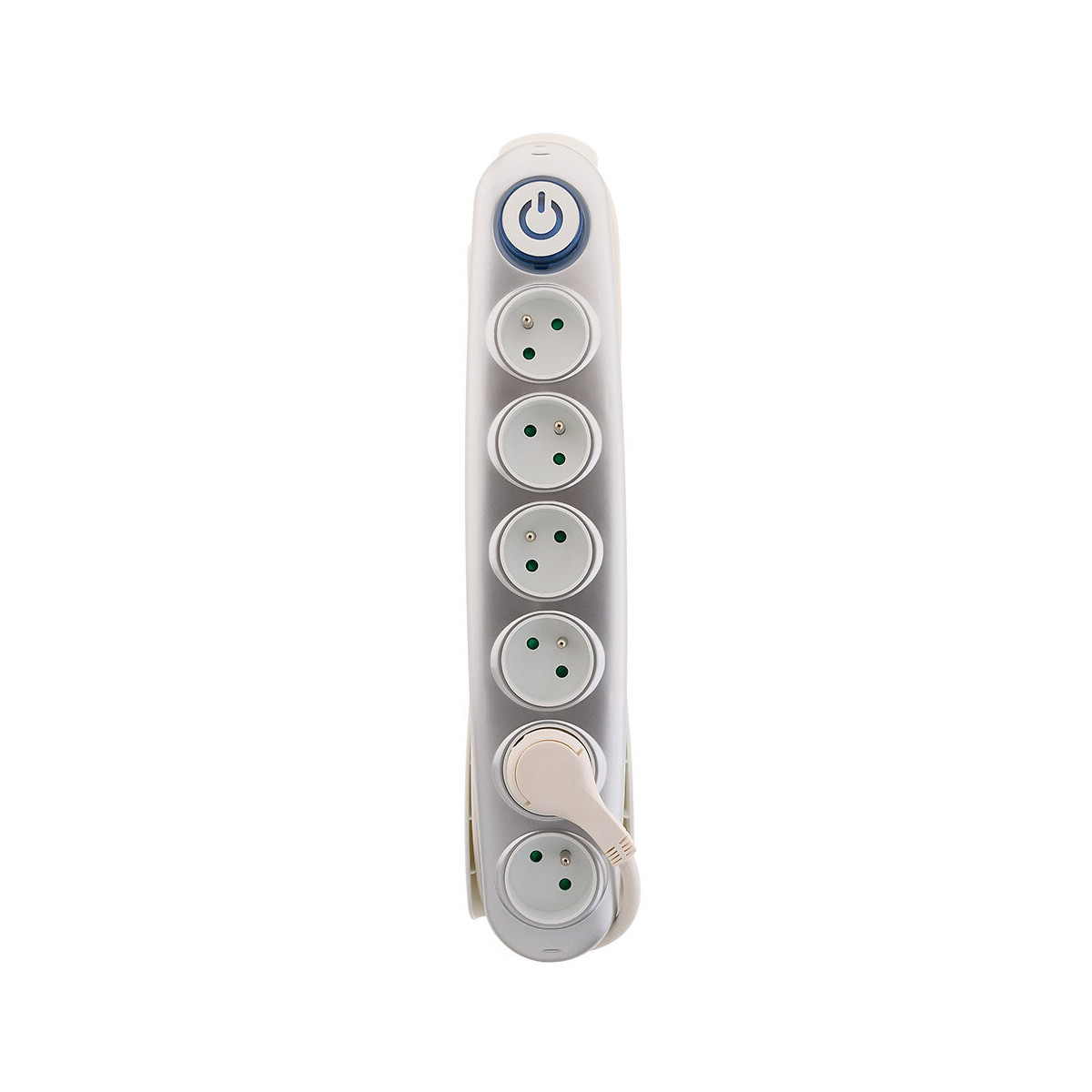 Cette multiprise est équipée de 6 prises 16A et d'un interrupteur. Elle est équipée d'un câble 3G1,5 mm² d'une longueur de 1.5 mètre. Grâce à sa fiche opposée, le branchement est facilité. Elle vous assure en outre un véritable gain de place grâce à son range-câble intégré.