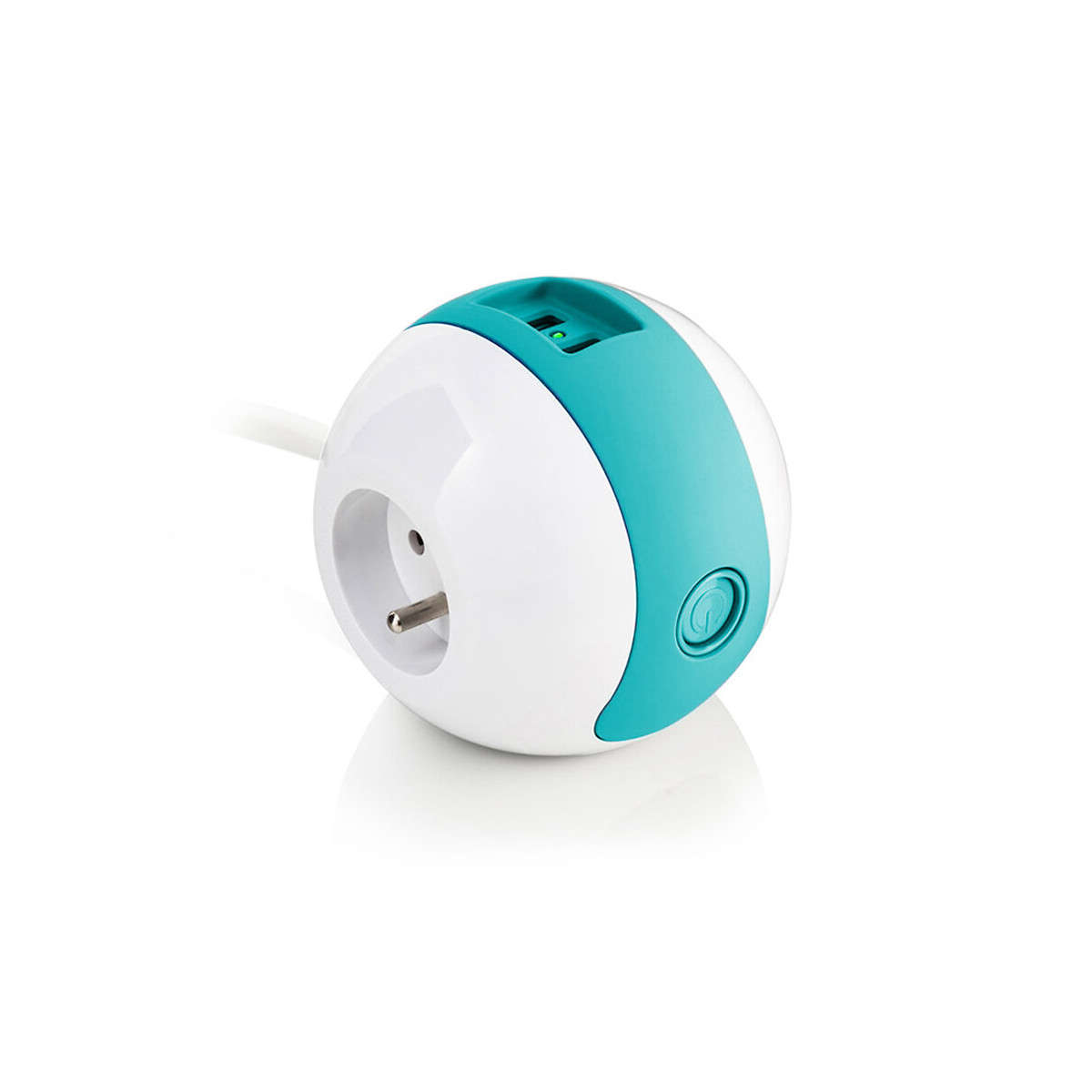 Multiprise Multimédia Wattball 2p 16a + 1p 6a + Usb 2.1a - Turquoise