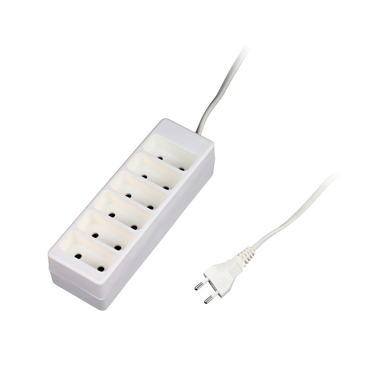 Bloc prises 2P+T 6A blanc. Puissance maxi: 1380W - 230V. Sécurité enfants. Norme CE et NF.