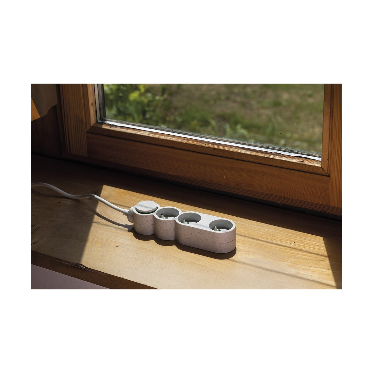 Le boîtier de ce bloc multiprise est fabriqué à partir de 80% de plastique recyclé (issu de produits plastiques ayant déjà eu une première vie), ce qui représente une proportion de 30 à 40% de matières recyclées si l?on considère le produit dans sa globalité. Le recyclé qui se voit ! Un design original et tendance avec une matière <> qui s?affiche. L?interrupteur à pied permet d?éteindre d?un geste vos appareils et d?éviter de consommer inutilement. L?indicateur d?alimentation passif (sans voyant lumineux) est économique et écologique. Sa fiche plate vous permettra de brancher cette multiprise derrière un meuble. Elle existe en 10 déclinaisons : Blanc ou noir, et en 3, 4, 5, 6 ou 8 prises. Caractéristiques : Blanc, 3 prises P+T, 16A, interrupteur à pied, câble 1,5m H05VVF 3G1,0mm², fiche plate, polypropylène recyclé, NF.