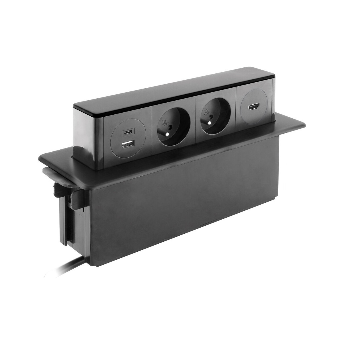 Cette multiprise encastrable design vous donne la possibilité de brancher 2 appareils électriques en simultané tout en rechargeant votre smartphone ou votre tablette de manière rapide. Conçu pour optimiser l'espace de travail et vous garantir un véritable gain de place, cette multiprise bénéficie de la technologie Quick Charge et s'intègre de manière discrète dans votre plan de travail. Encastrable, elle disparaît dès que vous n'avez plus besoin de l'utiliser. C'est le branchement idéal dans une cuisine ou un bureau. L'installation se fait de manière simple et rapide. Pour l'installer, il vous suffit de percer un trou rectangulaire sur votre surface d'une dimension de 247x60 (mm). Elle est équipée de 2 prises 16A, 2 ports USB et un port HDMI pour projeter de la vidéo.