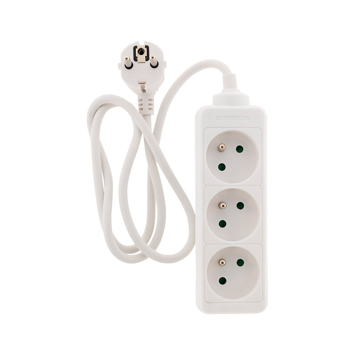 Bloc multiprises (3 prises) blanc. 2P+T 16A. Puissance maxi: 3680W -230V. Certifié NF. Sécurité enfant