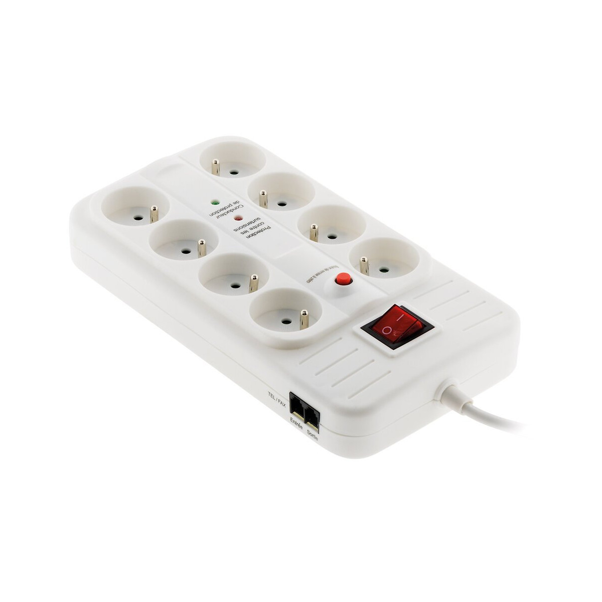 Ce bloc parafoudre multiprise (8 prises) possède les prises suivantes: prise secteur, prise TV/TNT, prise tel/ADSL. Elle est idéale pour le branchement de vos appareils domestiques, du matériel vidéo et matériel audio ainsi que du matériel informatique. Elle dispose de plusieurs protections: protection contre les surtensions (témoin lumineux), dispositif thermique de sécurité, sécurité enfant. 8 prises 2P+T 16A. Maxi: 3680W sous 230V. Câble H05VV-F 3G1,0 mm² (environ 1,5m).
