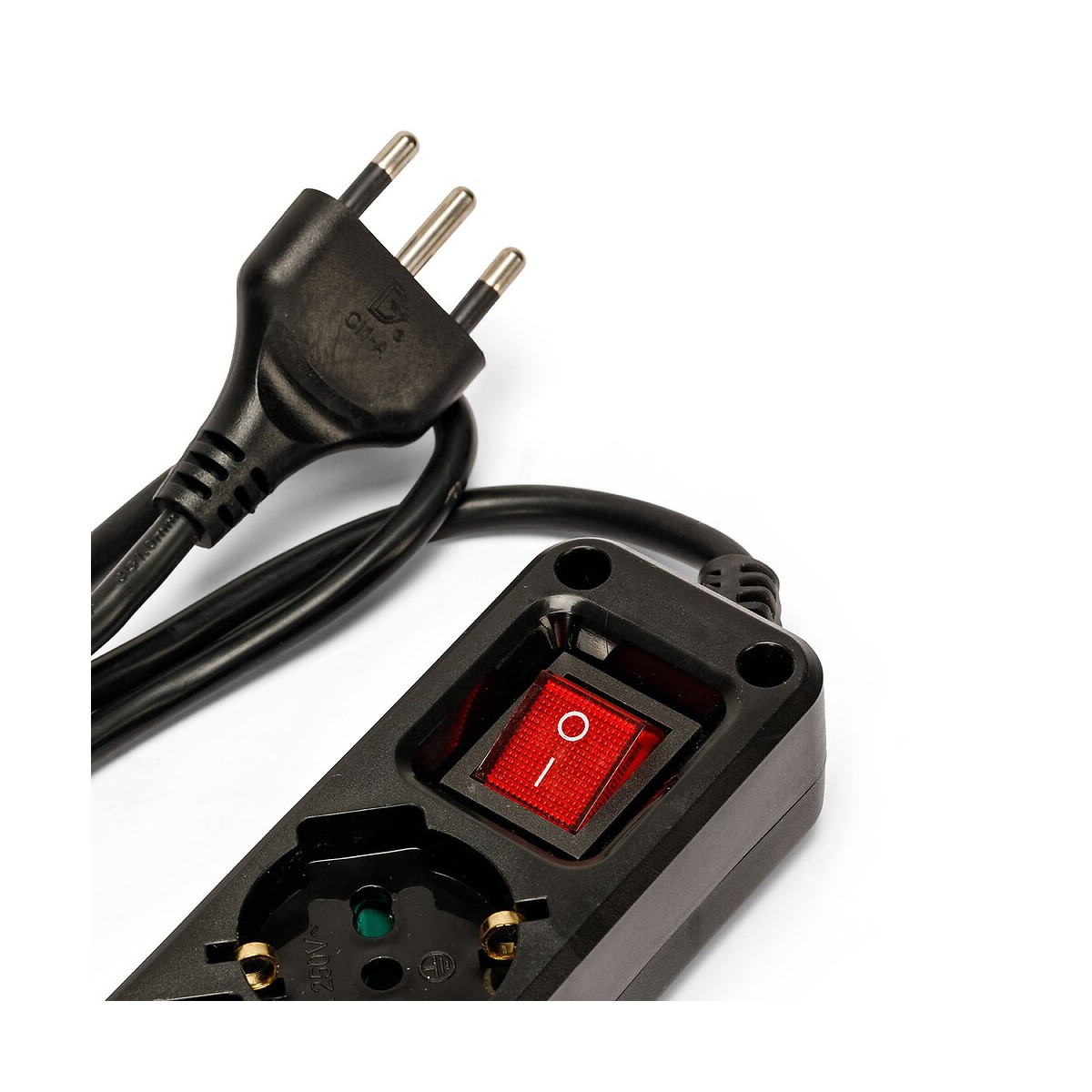 Multiprise avec 5 prises multifonction (schuko + 16A + 10A). Fiche 16A et câble H05VV-F 3G1 mm², longueur: 1 mètre. Indicateur lumineux ON / OFF. Toutes les prises sont équipées d'une protection enfant: elle empêche l'introduction de corps étrangers dans la prise sous tension. Produit certifié; noir.