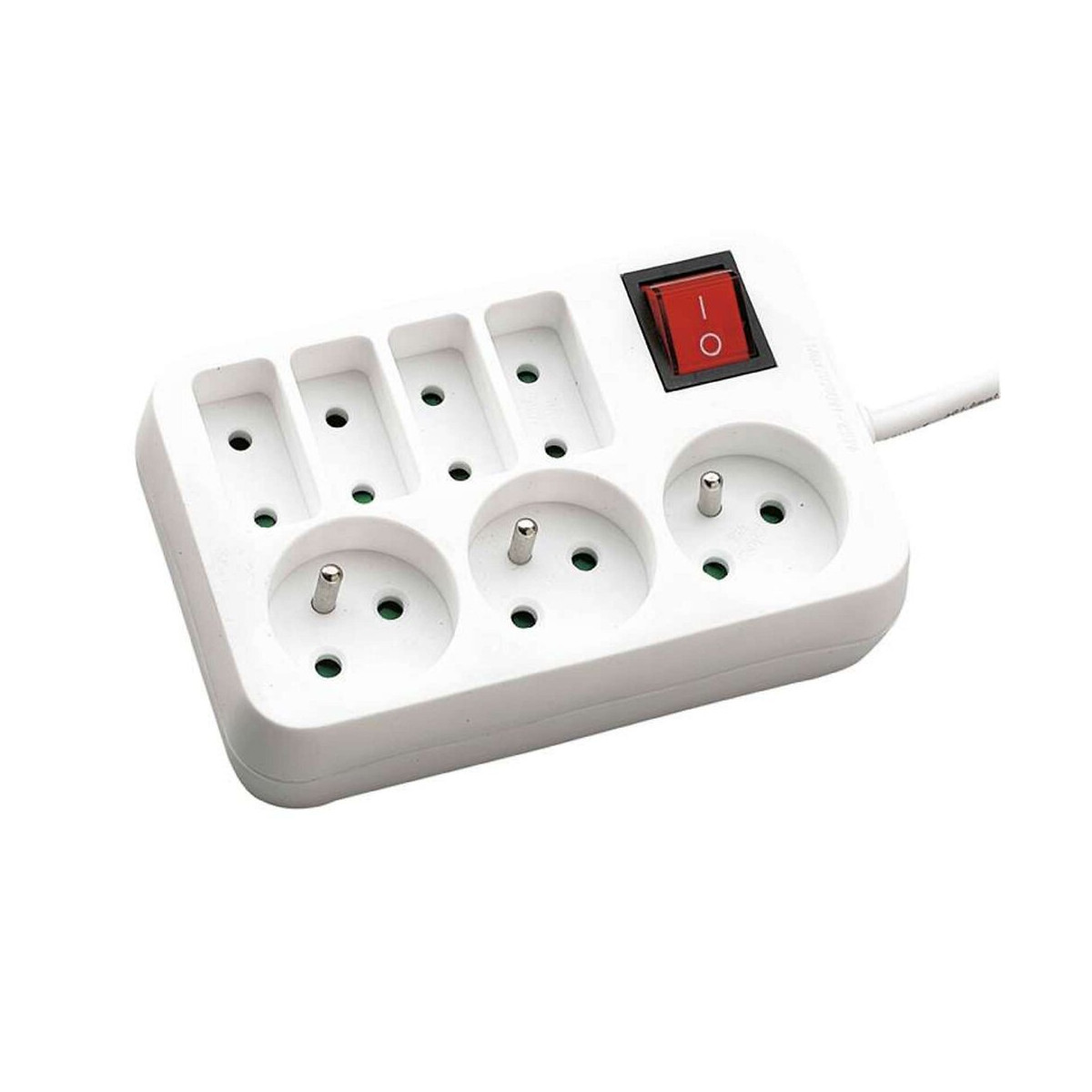 Bloc d'alimentation 7 prises comprenant 3 prises 2 pôles avec terre, 4 prises 2 pôles rectangulaires.