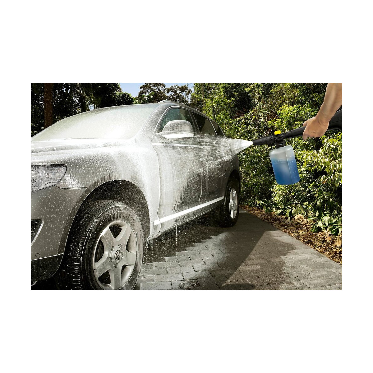 Le canon à mousse KÄRCHER permet de projeter de la mousse avec puissance pour nettoyer sans efforts les surfaces telles que les véhicules, les motos, les vitres, la pierre, etc. Placé directement sur la lance du nettoyeur haute pression, le canon à mousse rempli du détergent permet de projeter de manière puissante la mousse sur la surface à nettoyer. Caractéristiques : Réglage du débit : pour un dosage approprié lors des utilisations Pulvérisation : idéal pour pulvériser le détergent Angle d'aspersion réglable : à l'horizontale, comme à la verticale, une utilisation encore plus confortable Volume : 0, 6Litre Dimensions : Longueur 28, 5cm Largeur 9, 3cm Hauteur 23cmPoids : 0, 248kgSpécifications techniques
