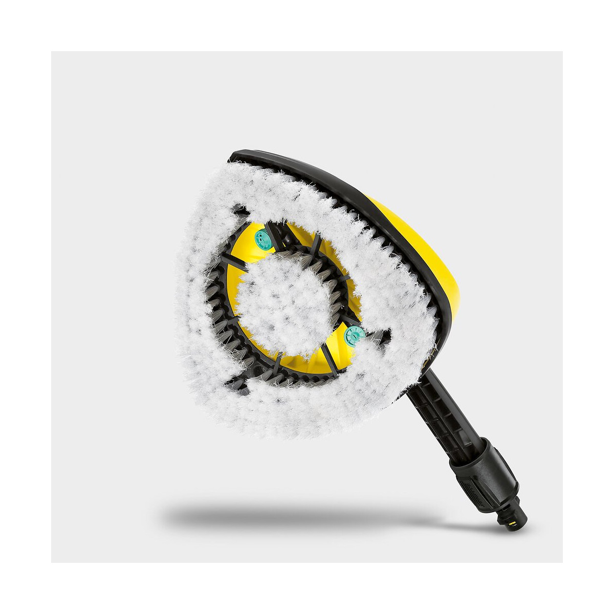 Premier accessoire à combiner le nettoyage haute pression à l‘action d'une brosse, pour un nettoyage plus rapide de 30%, efficace et sans effort. Ses poils souples sont idéaux pour nettoyer les surfaces sensibles : verre, vernis, plastique, véhicules, stores... LES PLUS PRODUIT : Anti-éclaboussure : aucune éclaboussure grâce sa construction triangulaire Intelligent : la brosse est équipée de 2 buses rotatives combinées avec une brosse de lavage utilisable en haute pression pour un nettoyage optimalSpécifications techniques