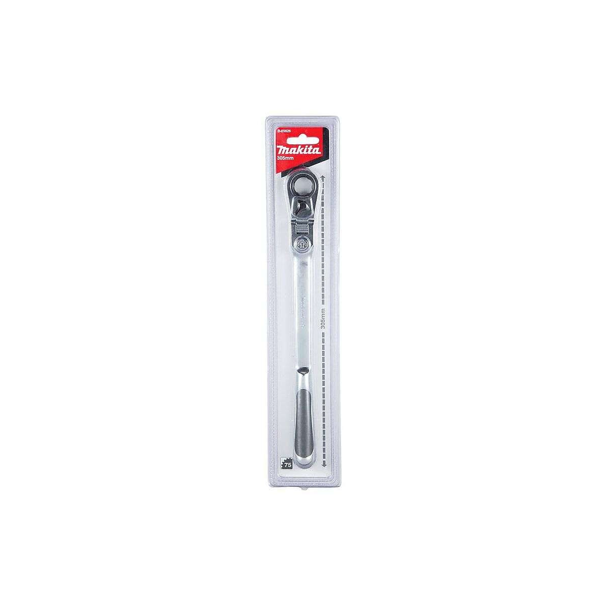Clé à piquet longue et articulée MAKITA B-65626 Cliquet 75 dents. La longueur du manche permet d'atteindre des couples de serrage élevé. L'articulation permet d'atteindre les zones difficiles d'accès Longueur : 305 mm