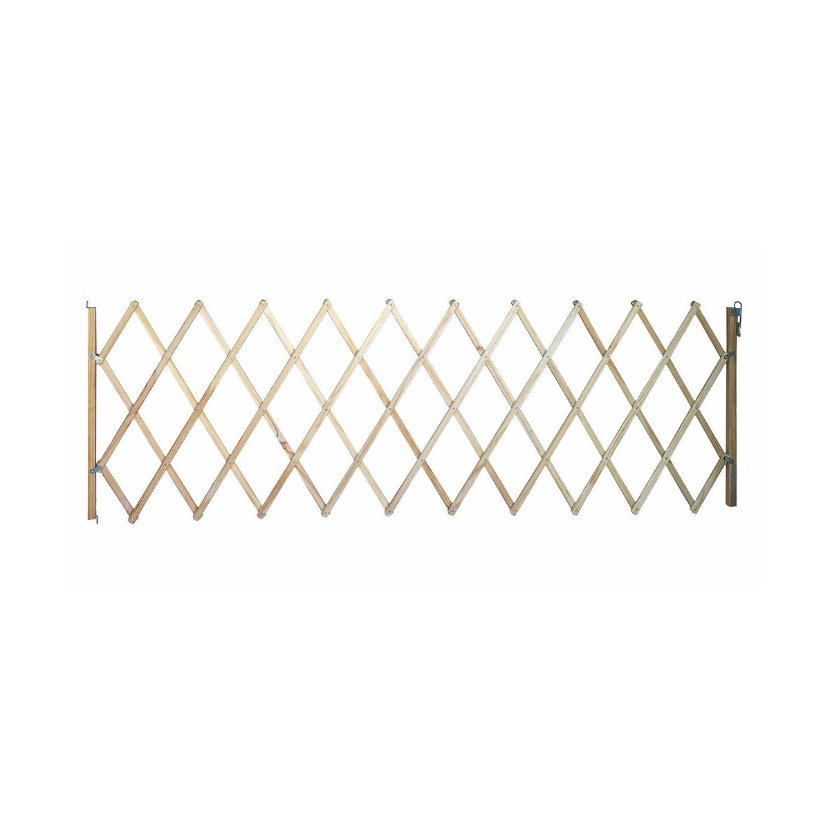 Barrière bois extensible pour animaux. Très grande plage d'ouverture (60-2,30 cm). Economique. Installation facile. Idéal pour les baies vitrées. Ne convient pas aux enfants.