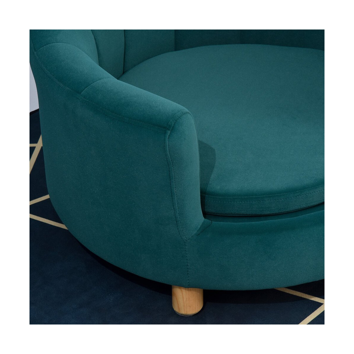 Canapé Chien Lit Pour Chien Chat Avec Accoudoirs Coussin Moelleux Pieds Bois Massif Dim. 65 X 64 X 37 Cm Velours Bleu Canard