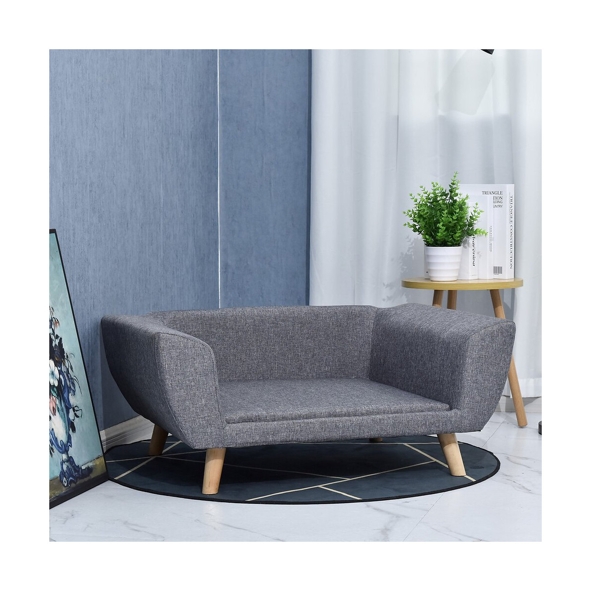 Canapé Chien Lit Pour Chien Design Scandinave Coussin Moelleux Pieds Bois Massif Dim. 87 X 61 X 36 Cm Polyester Gris
