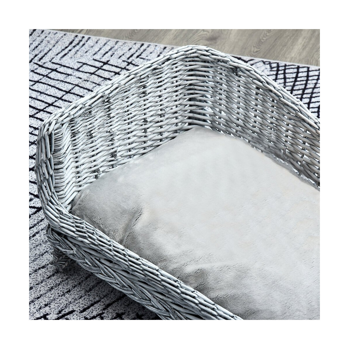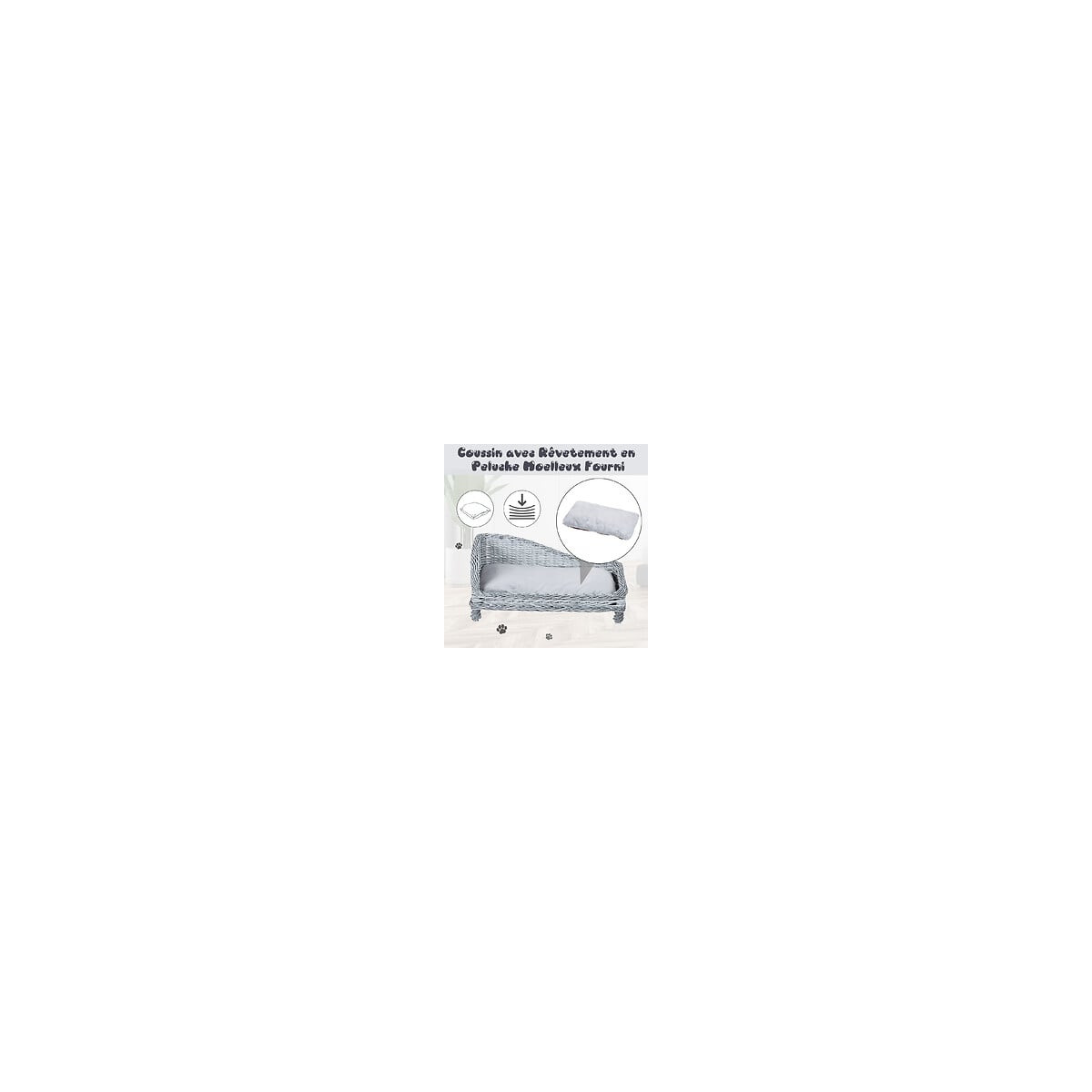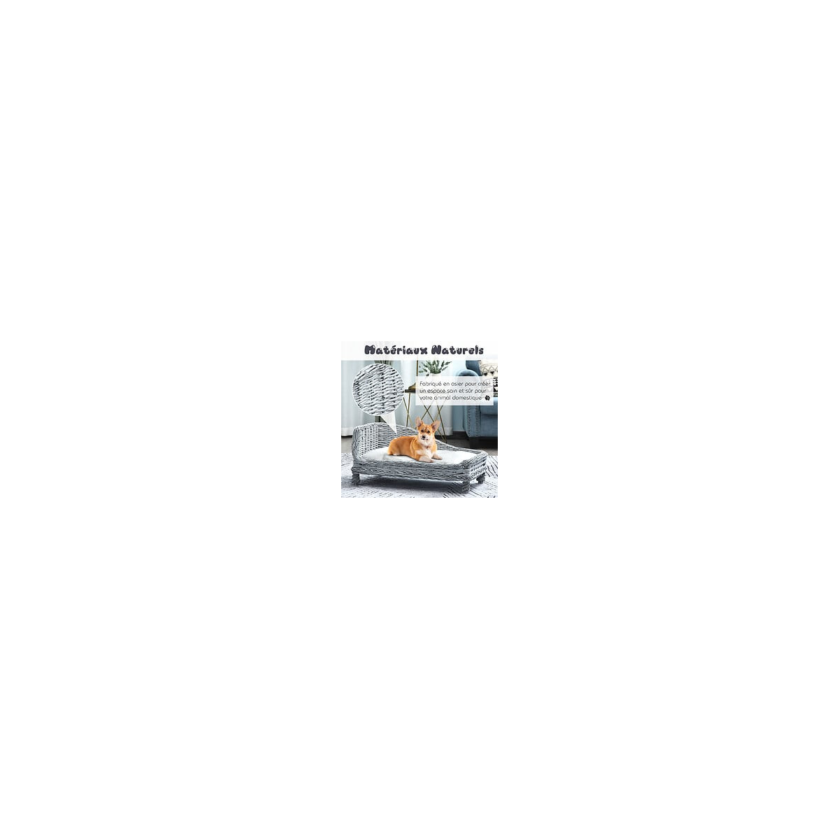 Canapé Méridienne Chiens Chats Style Cosy Chic Dim. 60l X 49l X 31h Cm Coussin Intégré Osier Gris