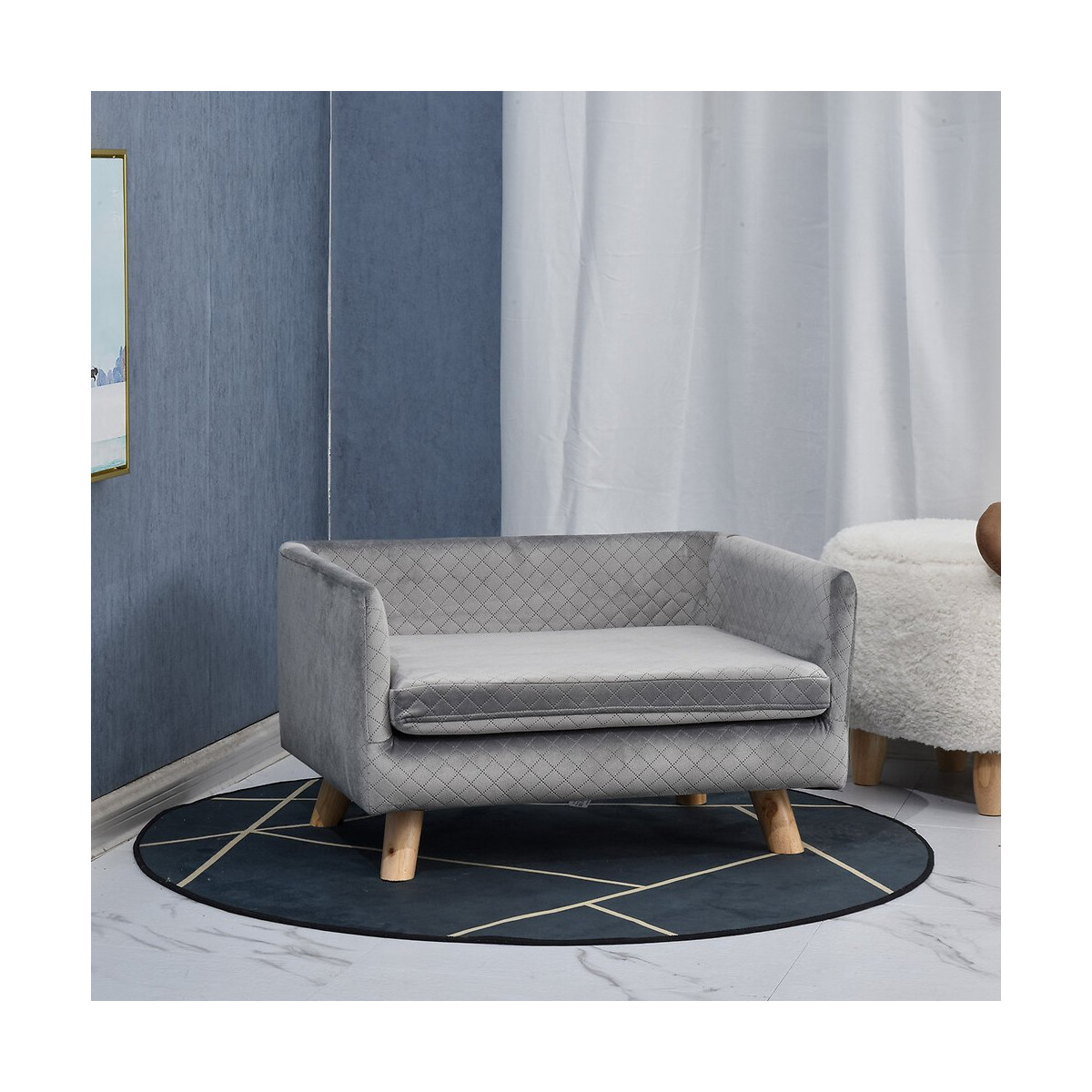 Canapé Chien Lit Pour Chien Design Scandinave Coussin Moelleux Pieds Bois Massif Dim. 64 X 45 X 36 Cm Velours Gris