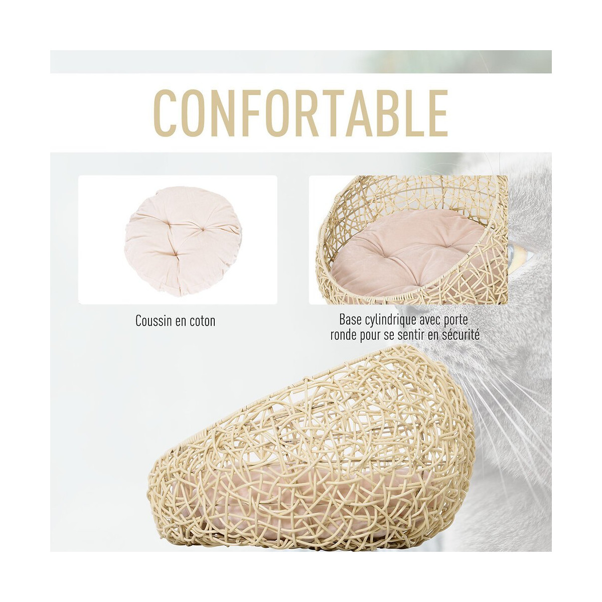 Panier Chat Lit Chat Cosy Grand Confort Dim. Ø 56 X 35h Cm Coussin Moelleux Inclus Pvc Imitation Rotin Beige