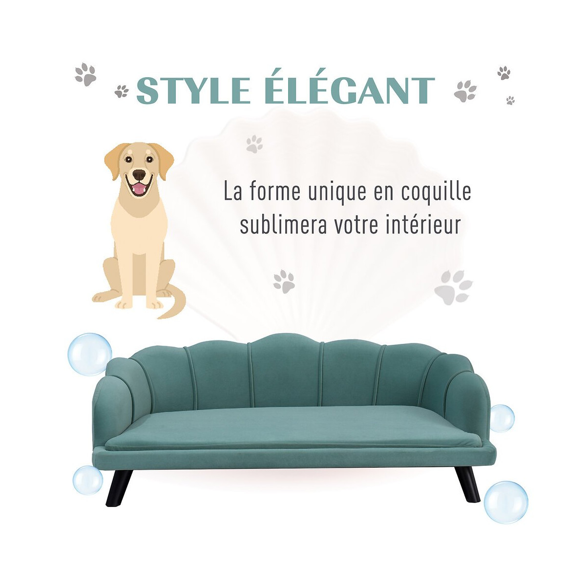 Canapé Chien Lit Pour Chien Chat Design Contemporain Coquillage Dim. 98l X 60l X 35h Cm Coussin Moelleux Velours Vert