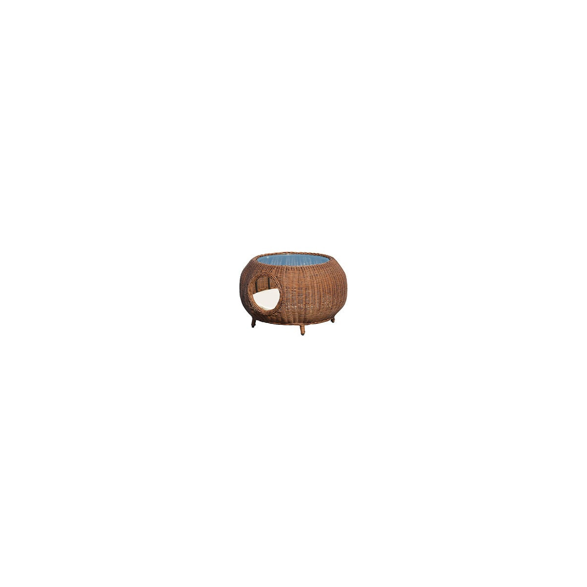 Panier Chat Cosy Grand Confort Table Basse 2 En 1 Coussin Amovible Déhoussable Résine Tressée Marron
