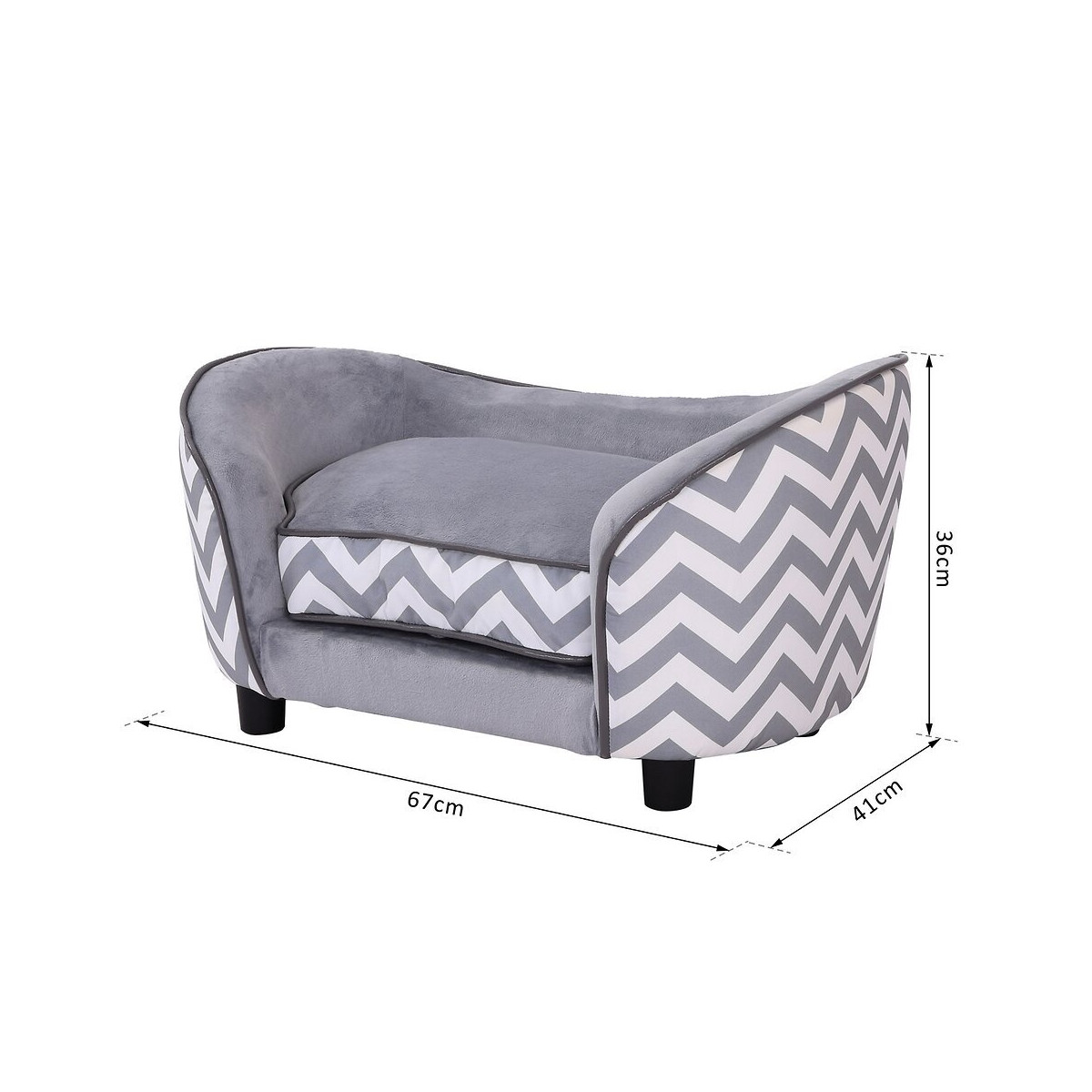Ce canapé chien chat style graphique contemporain sera idéal pour le repos de votre animal. Très élégant, confortable, doté d'une pochette de rangement, et facile d'entretien grâce à sa surface en velours déhoussable, ce canapé fera le bonheur de votre animal ! Caractéristiques : - Design contemporain style graphique bicolore gris et blanc très élégant afin de constituer une véritable pièce de décoration de votre intérieur - Assise, dossier et accoudoirs rembourrés de mousse pour le plus grand confort de votre animal - Housse du coussin en velours grand confort déhoussable et lavable : entretien pratique et facile - Pochette de rangement située à l'arrière du canapé : idéal pour ranger les accessoires de votre animal - Structure en bois robuste - Pieds robustes démontables si besoin Spécifications : - Couleurs principales : gris, blanc - Matériaux principaux : bois, mousse de rembourrage, velours, plastique - Dimensions totales : 68,5L x 40,5l x 40,5H cm - Dimensions de l'assise : 46L x 30l x 27H cm - Diamètre et hauteur des pieds : 5 cm - Charge max. recommandée : 10 Kg - Réf. : D04-072GYSpécifications techniques