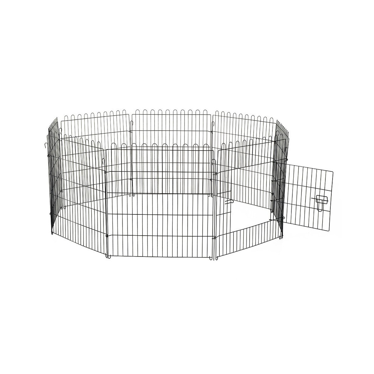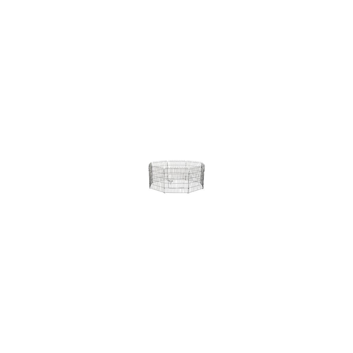 Ce parc enclos convient à tous types d'animaux de compagnie tels les chiens, les chats, les lapins, etc... Doté de 8 panneaux, vous pourrez modifier sa configuration à votre guise suivant les préférences de vos animaux. Équipé d'une porte avec système de verrouillage, vos animaux profiterons d'un espace adaptable et entièrement sécurisé ! Caractéristiques: -Parc Enclos polyvalent pouvant accueillir de nombreuses espèces d'animaux de compagnie et autres -Garantie de sécurité pour vos animaux grâce à sa fabrication et maillage en fil de fer robuste haut de gamme et à son système de verrou accessible de l'extérieur -8 crochets d'ancrage au sol et 8 crochets d'interconnnexion entre chaque panneau pour plus de rigidité et stabilité -Parc enclos polyvalent pouvant être disposé sous de nombreuses formes : rectangulaire, carrée, octogonale, etc... suivant vos besoins -Utilisation possible en extérieur -Montage et démontage faciles et rapides Spécifications: -Couleur : noir -Composition colis : 8 panneaux -Dimensions totales de chaque panneau : 71L x 91H cm -Diamètre maximum parc : 1,58 m -Dimensions de la porte : 35L x 55H cm -Dimensions maillage : 3,1L x 16H cm -Matériau principal : acier -Réf: D06-029Spécifications techniques